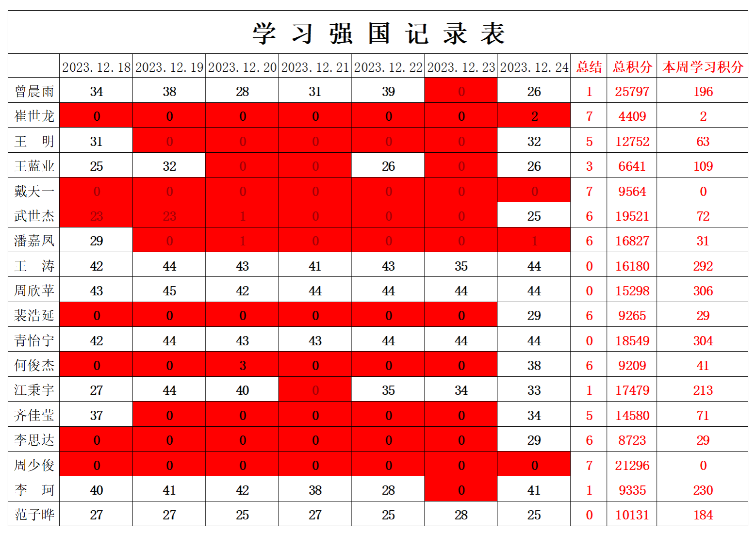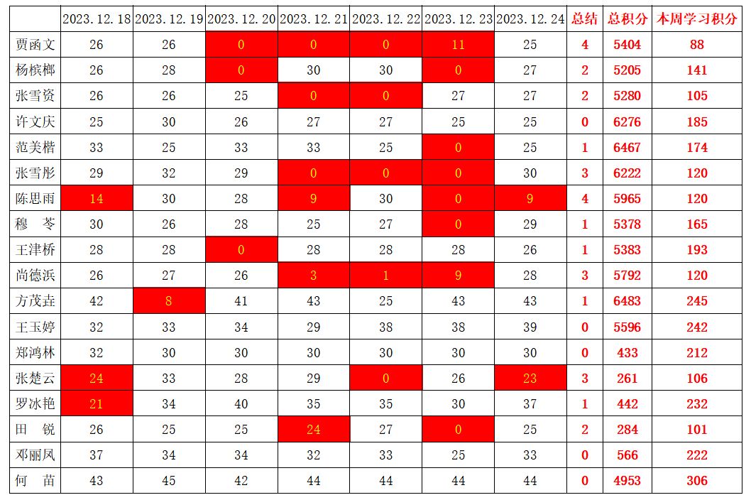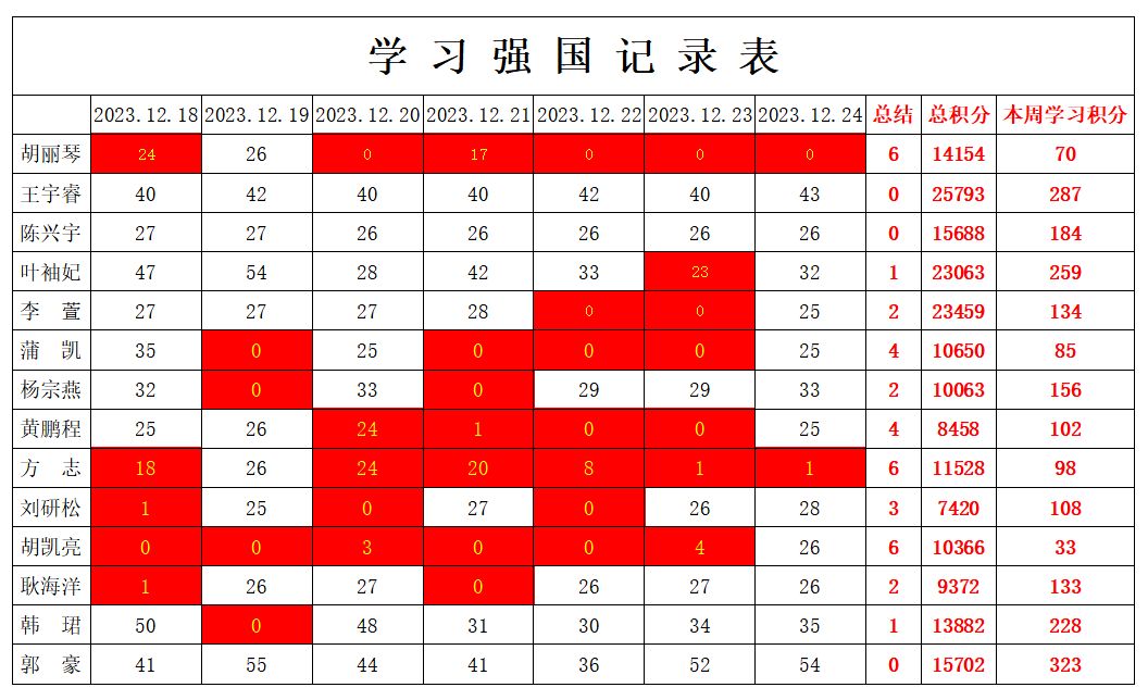 betway必威西汉姆联学生党支部2023-2024学年第一学期第十六周学习强国学习进度