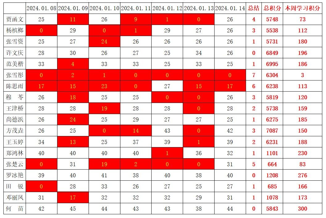 betway必威西汉姆联学生党支部2024年寒假第一周学习强国学习进度