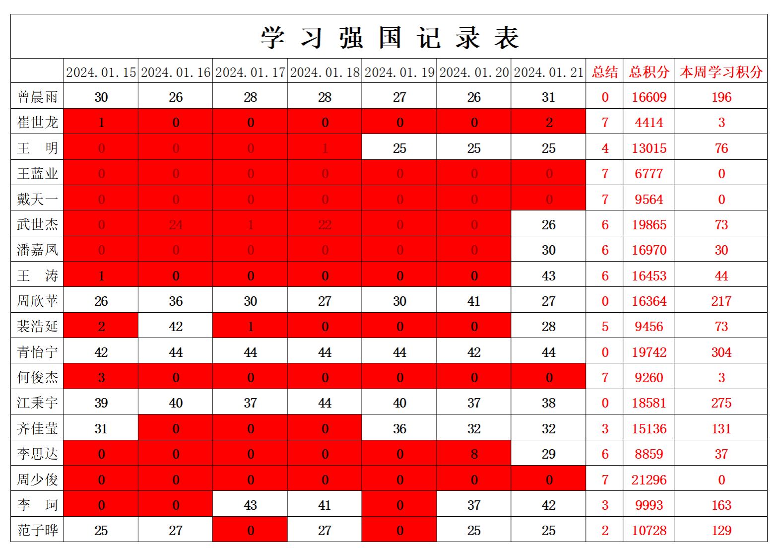 betway必威西汉姆联学生党支部2024年寒假第二周学习强国学习进度