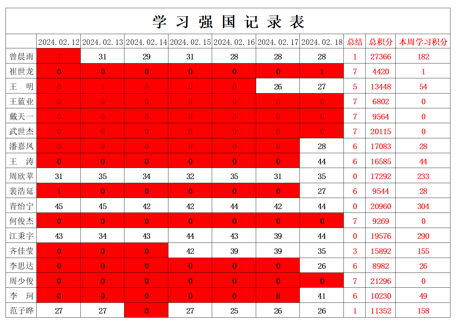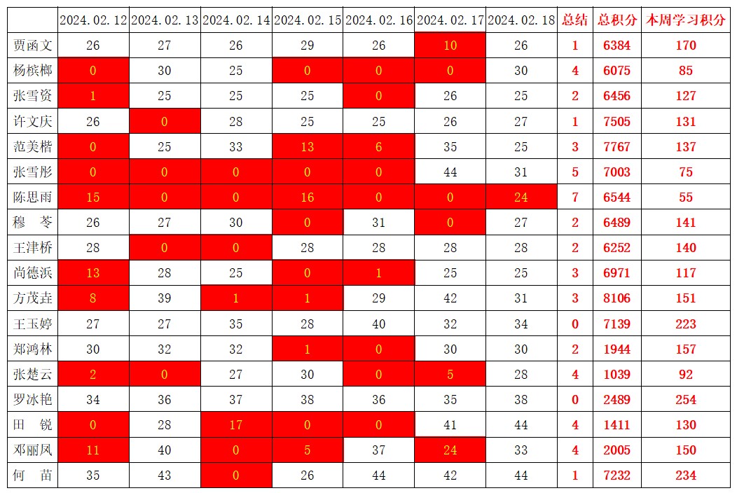 betway必威西汉姆联学生党支部2024年寒假第六周学习强国学习进度