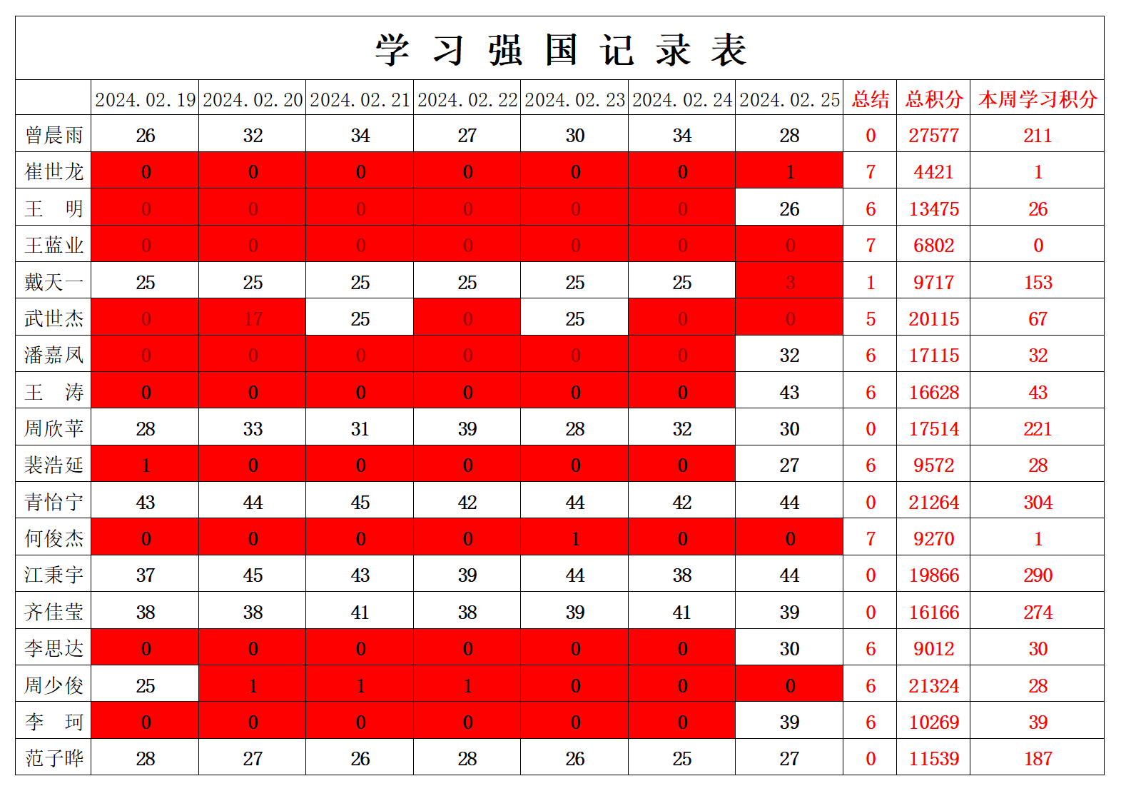betway必威西汉姆联学生党支部2024年寒假第七周学习强国学习进度