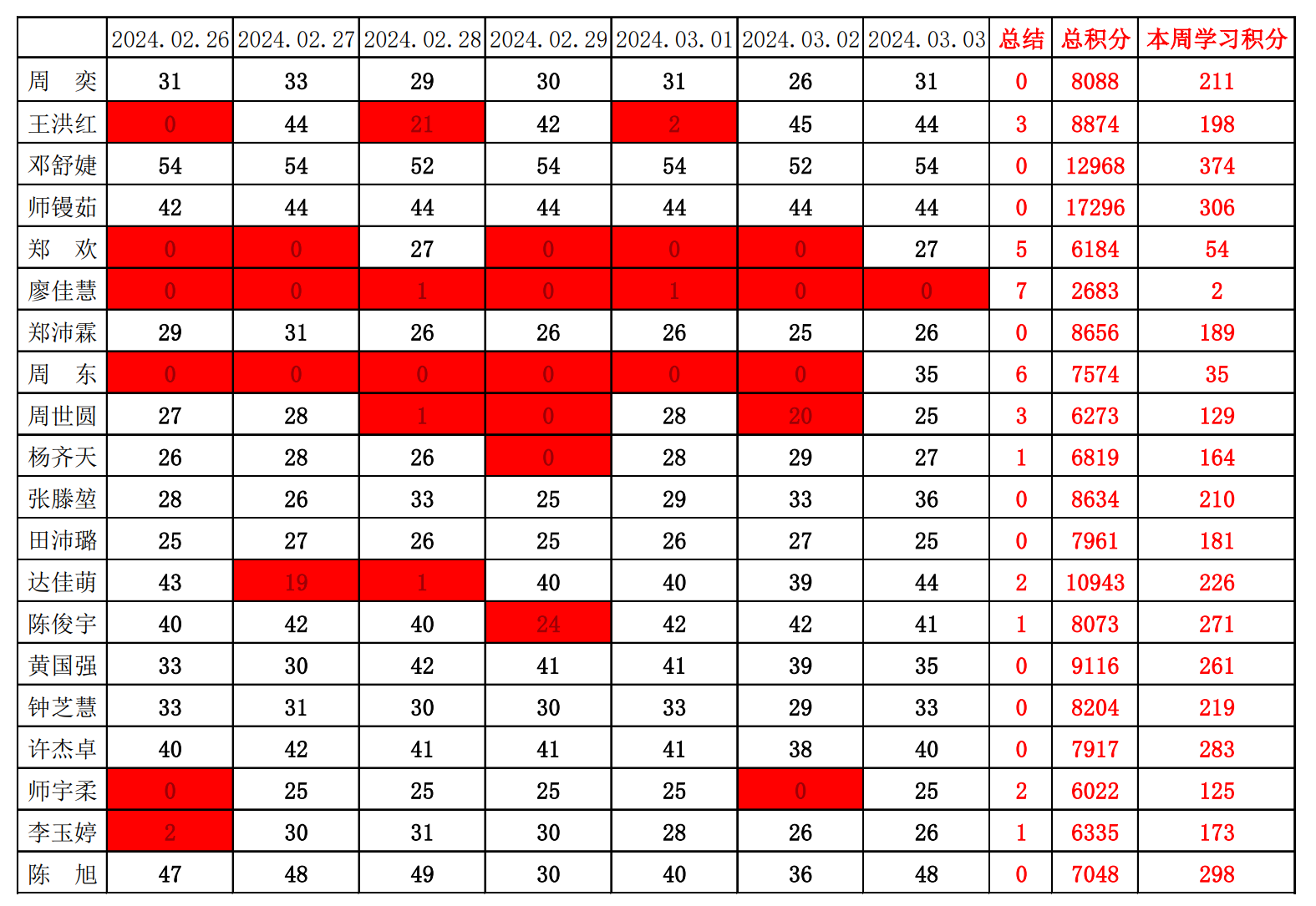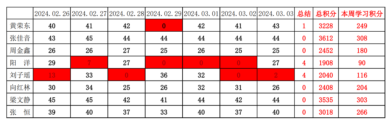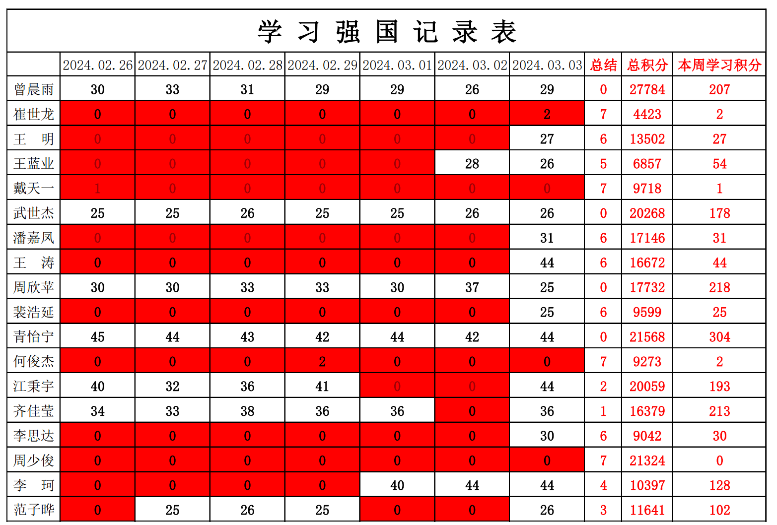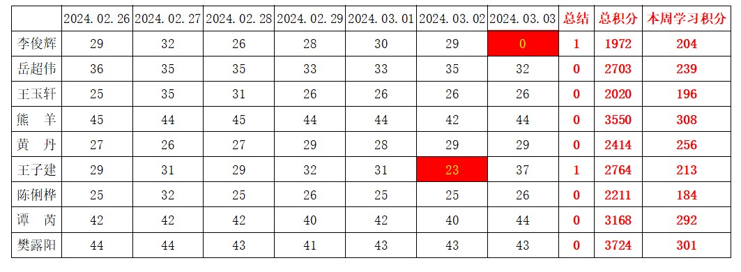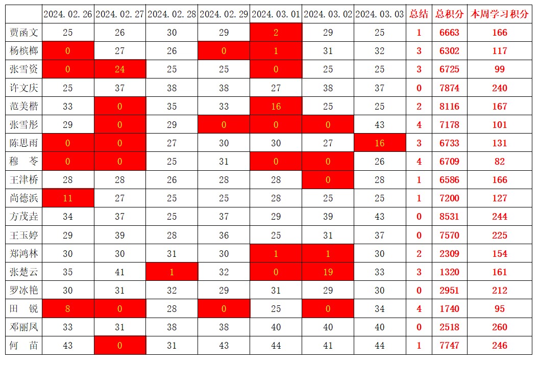 betway必威西汉姆联学生党支部2023-2024学年第二学期第一周学习强国学习进度