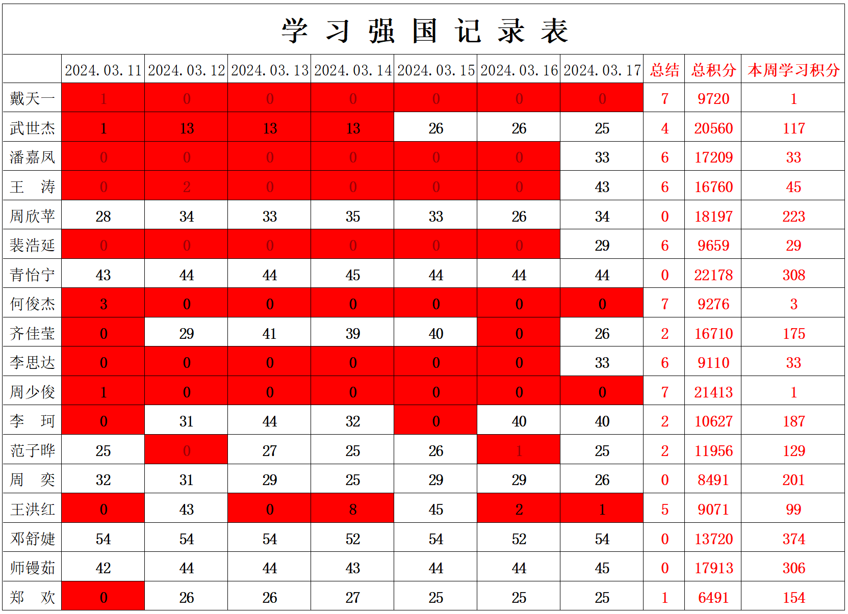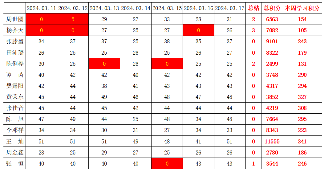 betway必威西汉姆联学生党支部2023-2024学年第二学期第三周学习强国学习进度