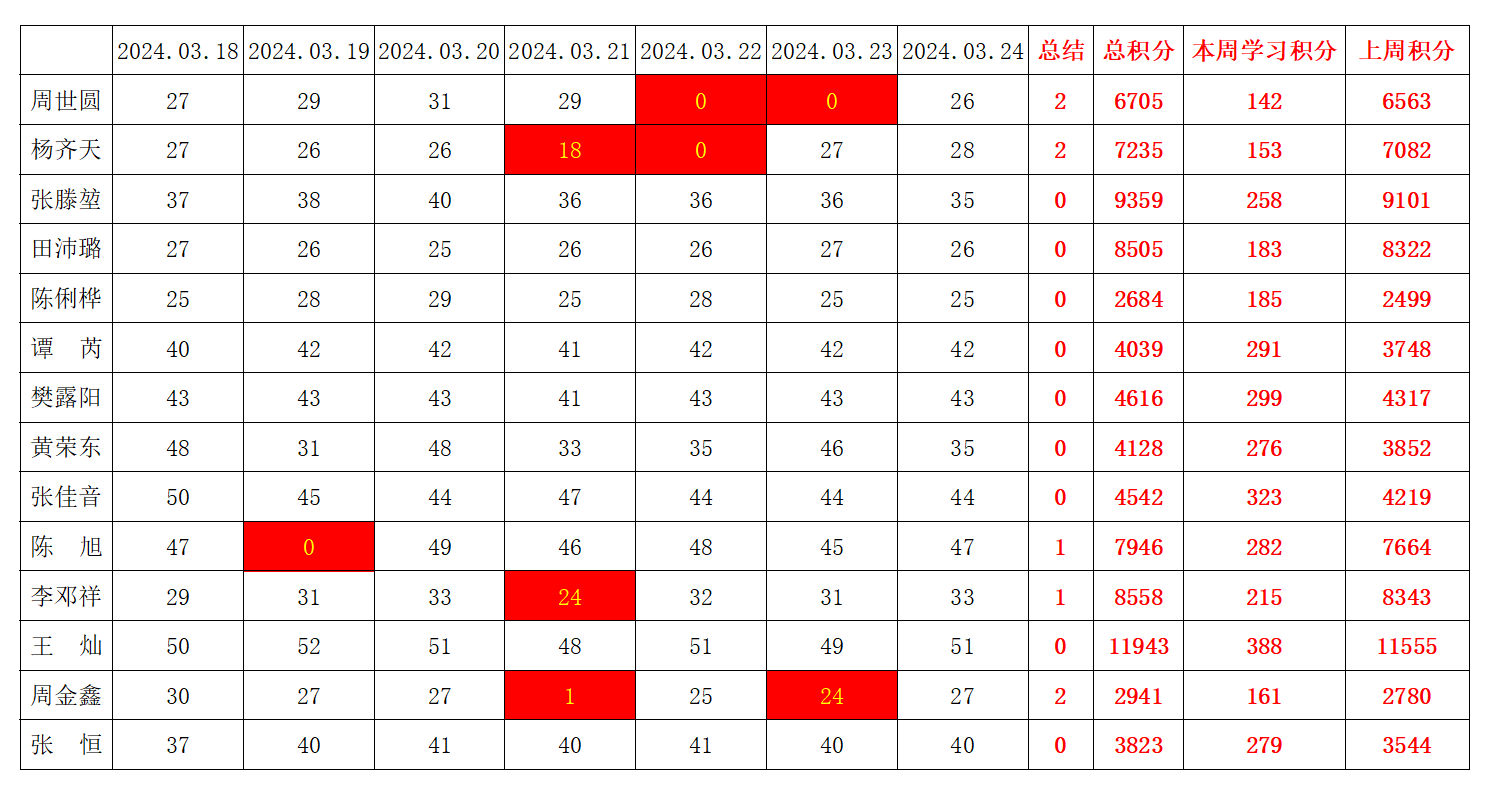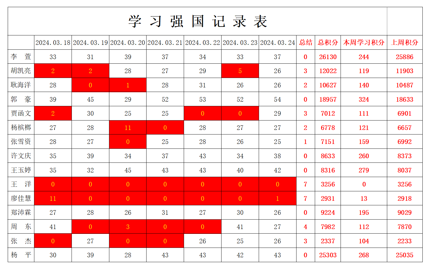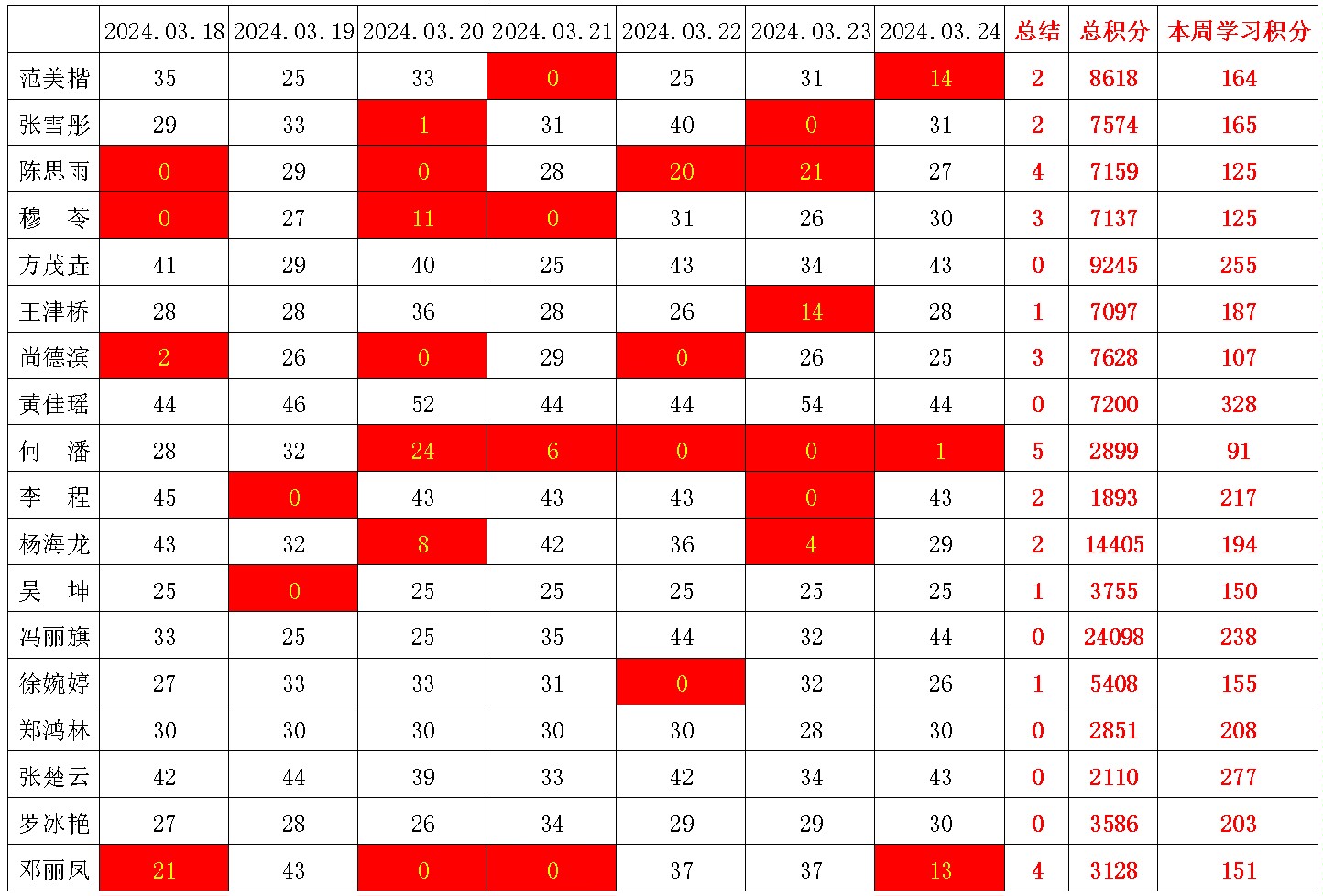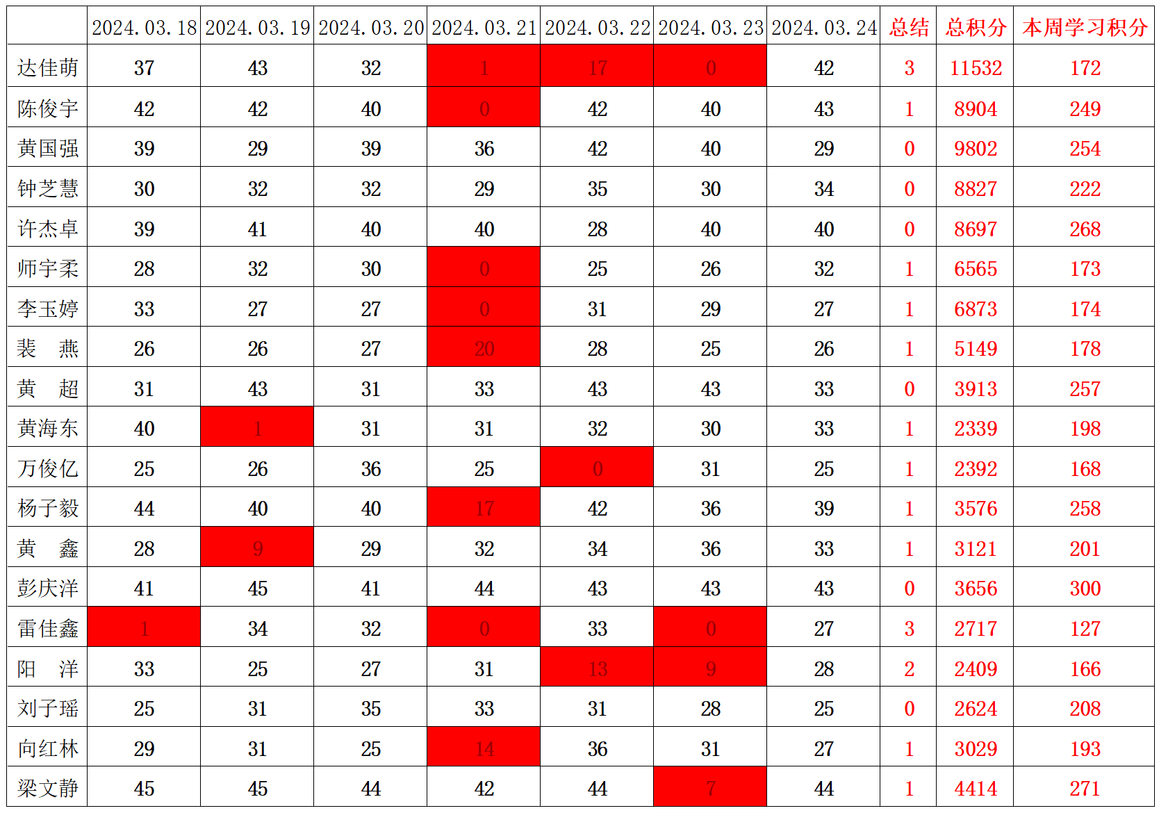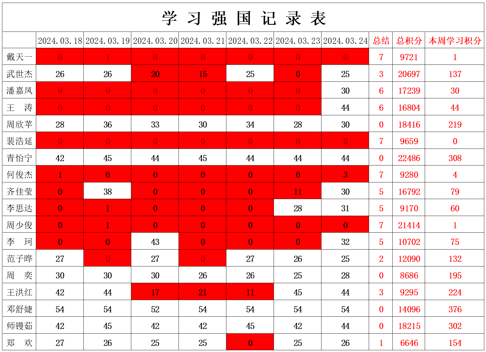 betway必威西汉姆联学生党支部2023-2024学年第二学期第四周学习强国学习进度