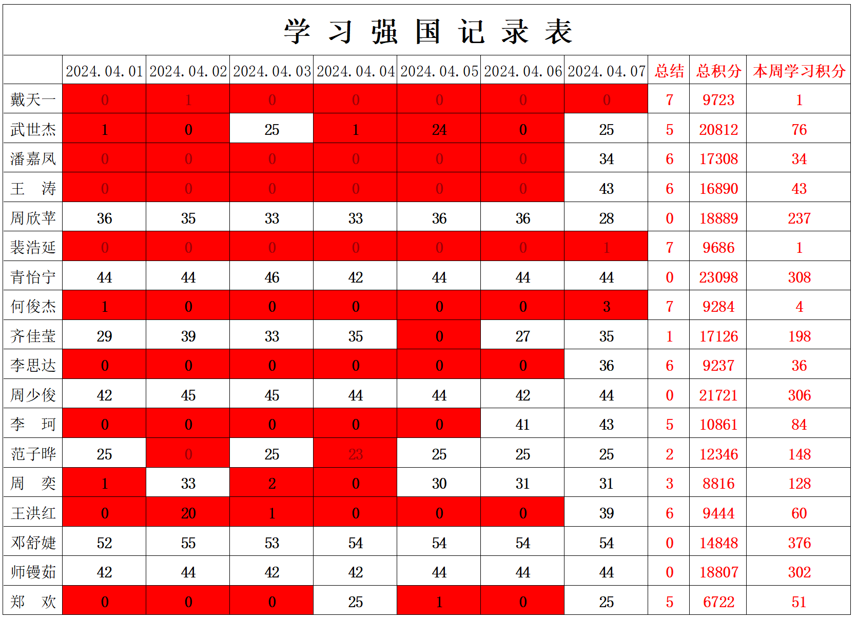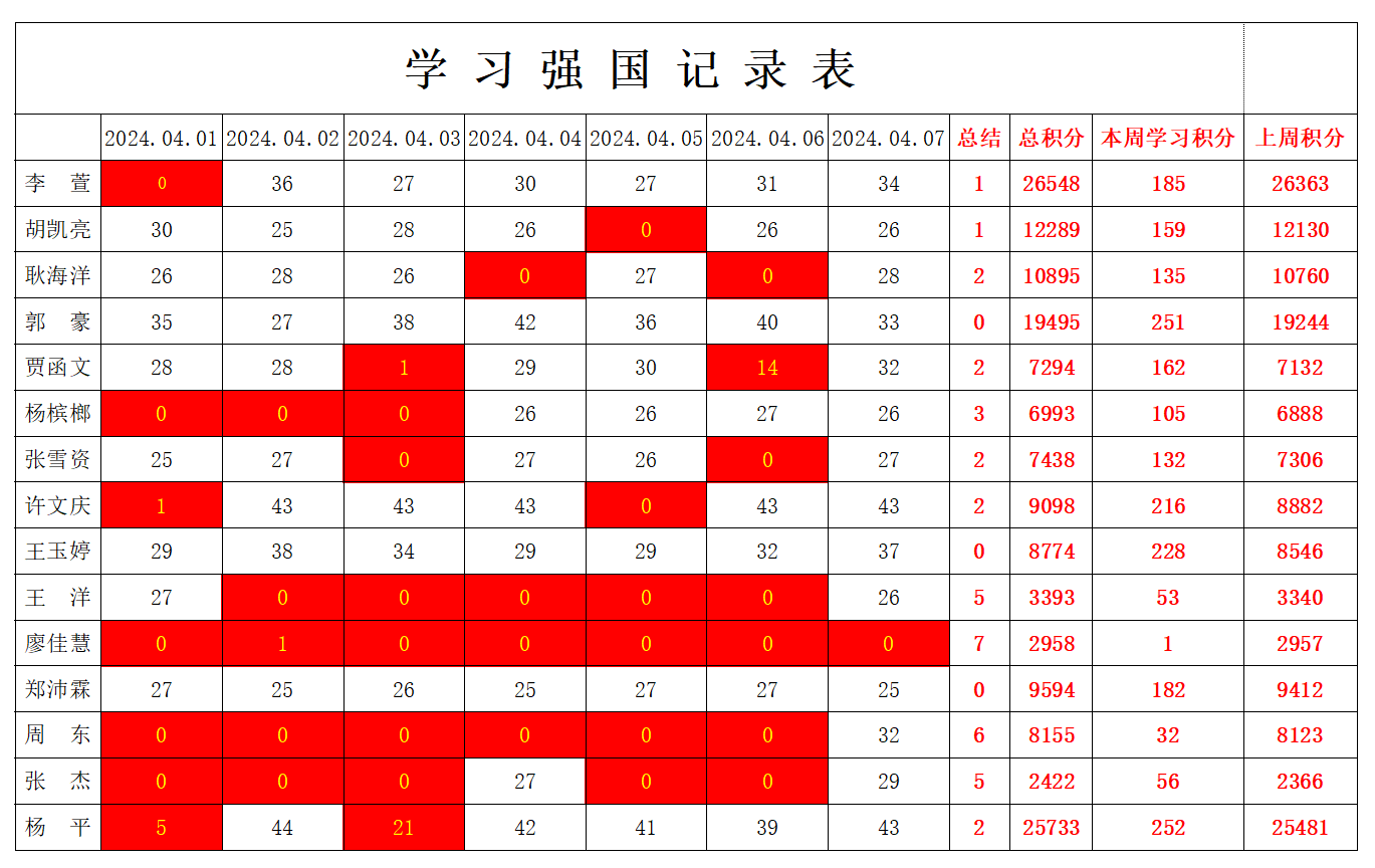betway必威西汉姆联学生党支部2023-2024学年第二学期第六周学习强国学习进度