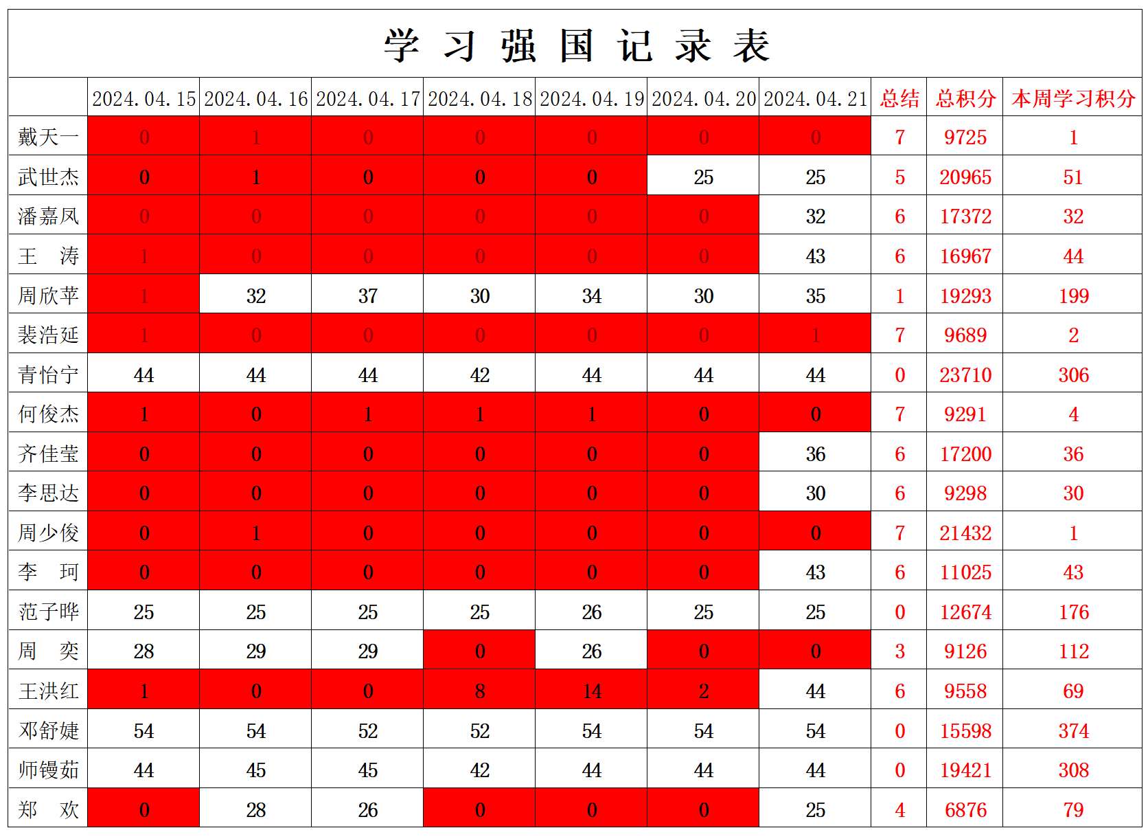 betway必威西汉姆联学生党支部2023-2024学年第二学期第八周学习强国学习进度