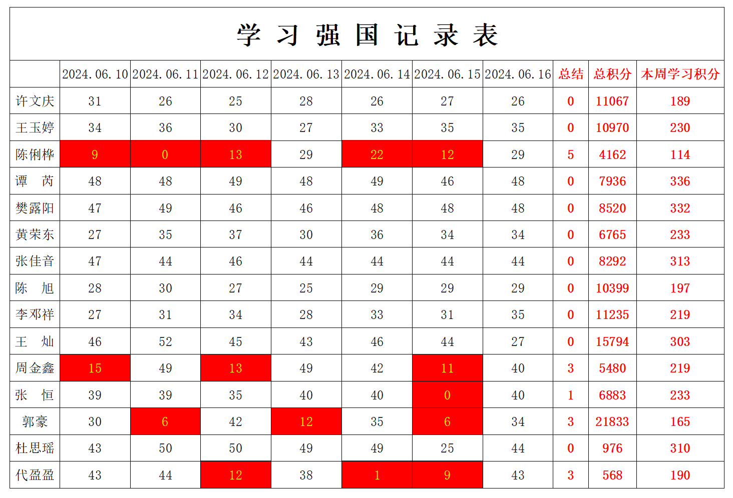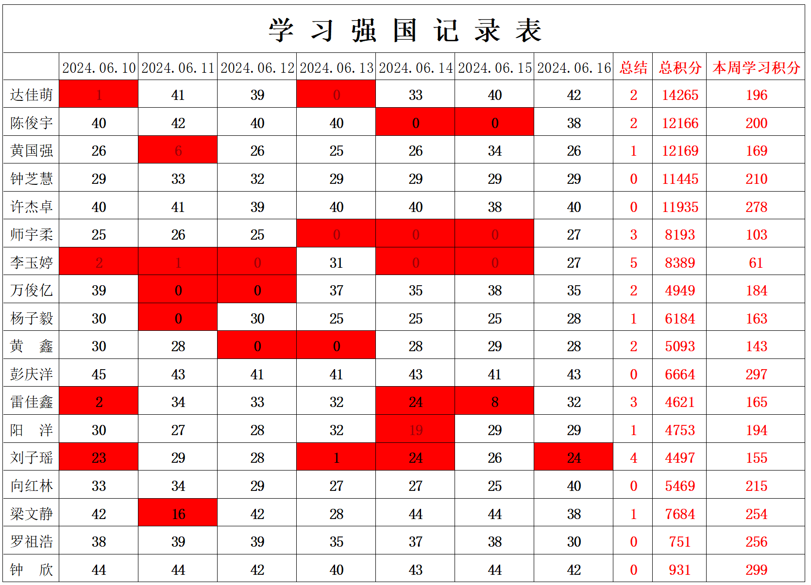 betway必威西汉姆联学生党支部2023-2024学年第二学期第十六周学习强国学习进度