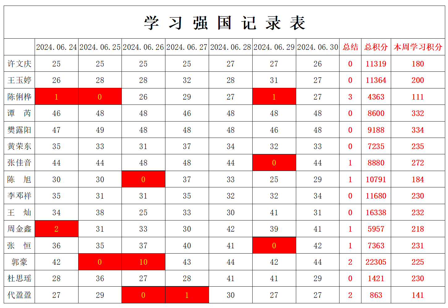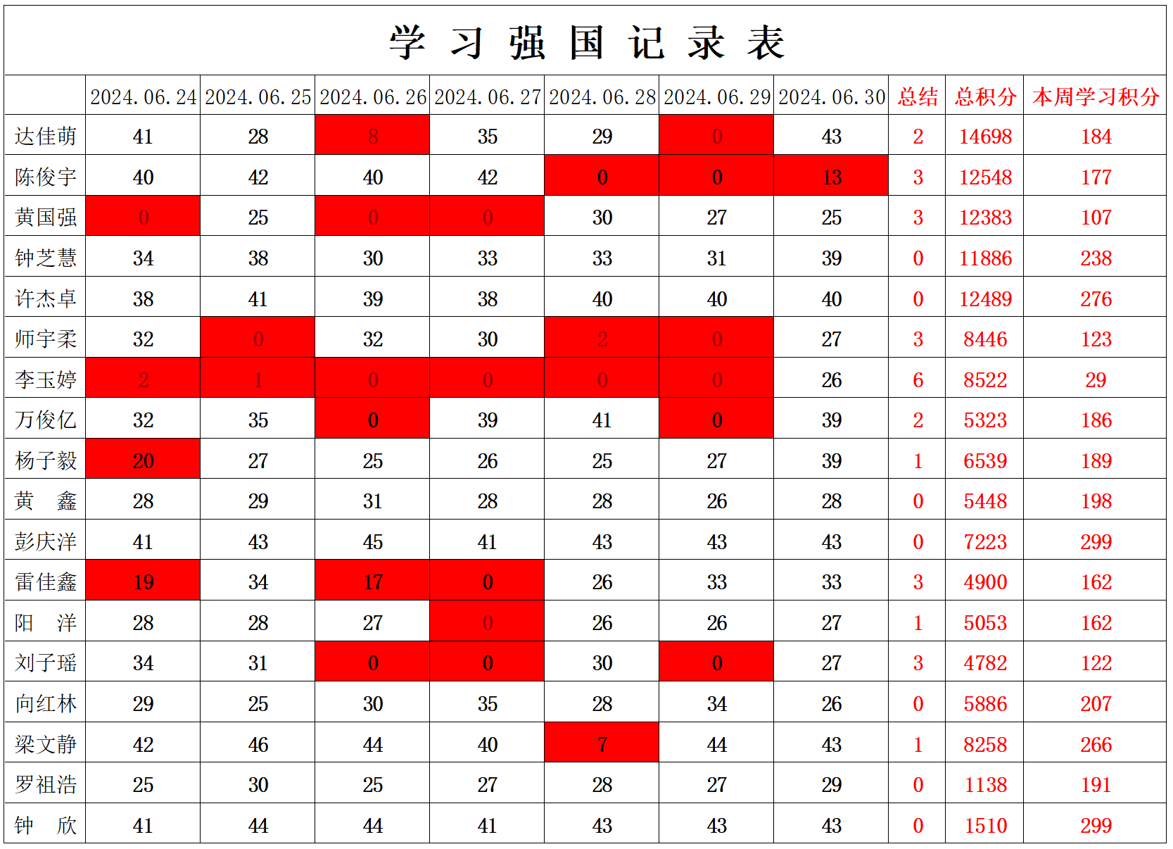 betway必威西汉姆联学生党支部2023-2024学年第二学期第十八周学习强国学习进度