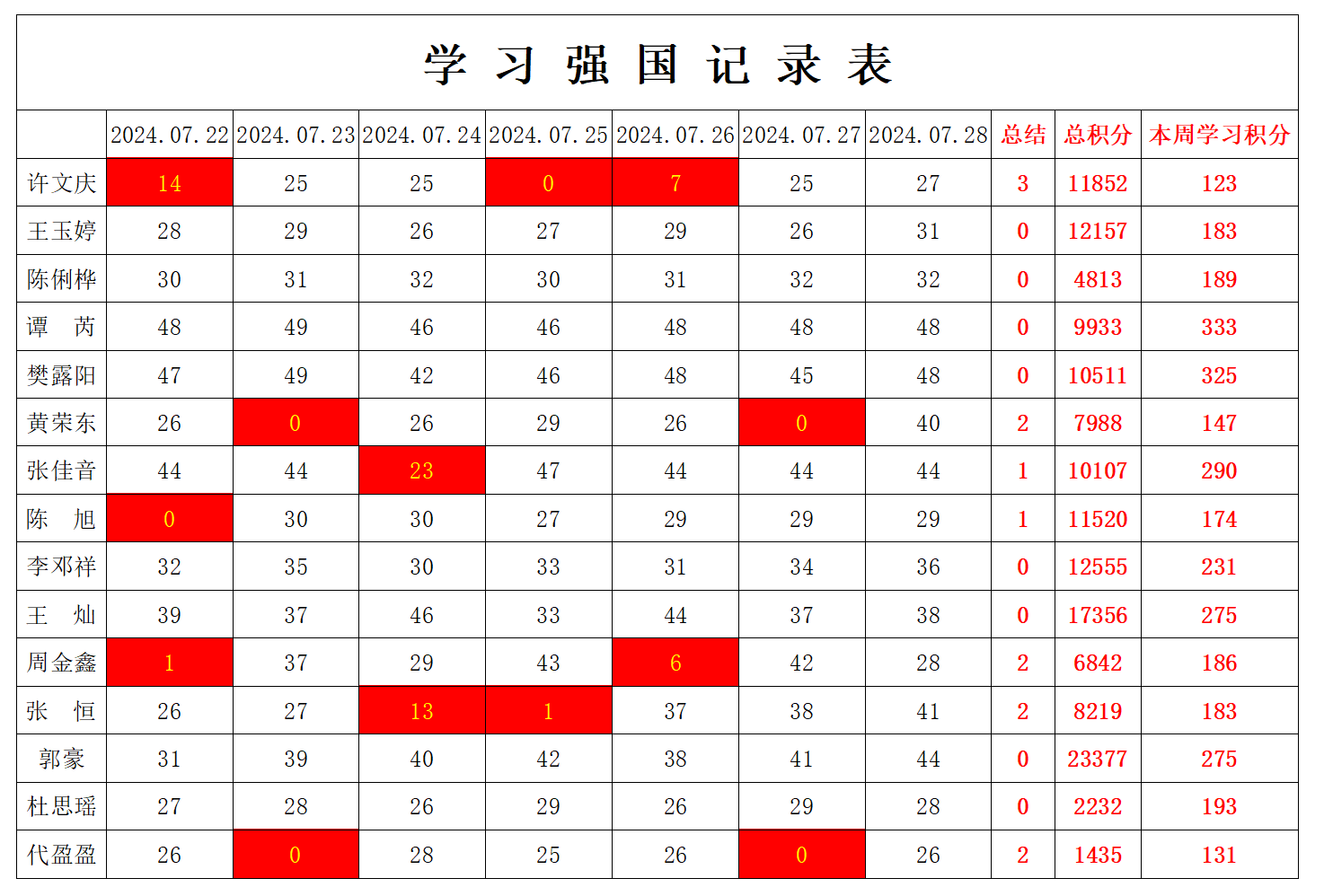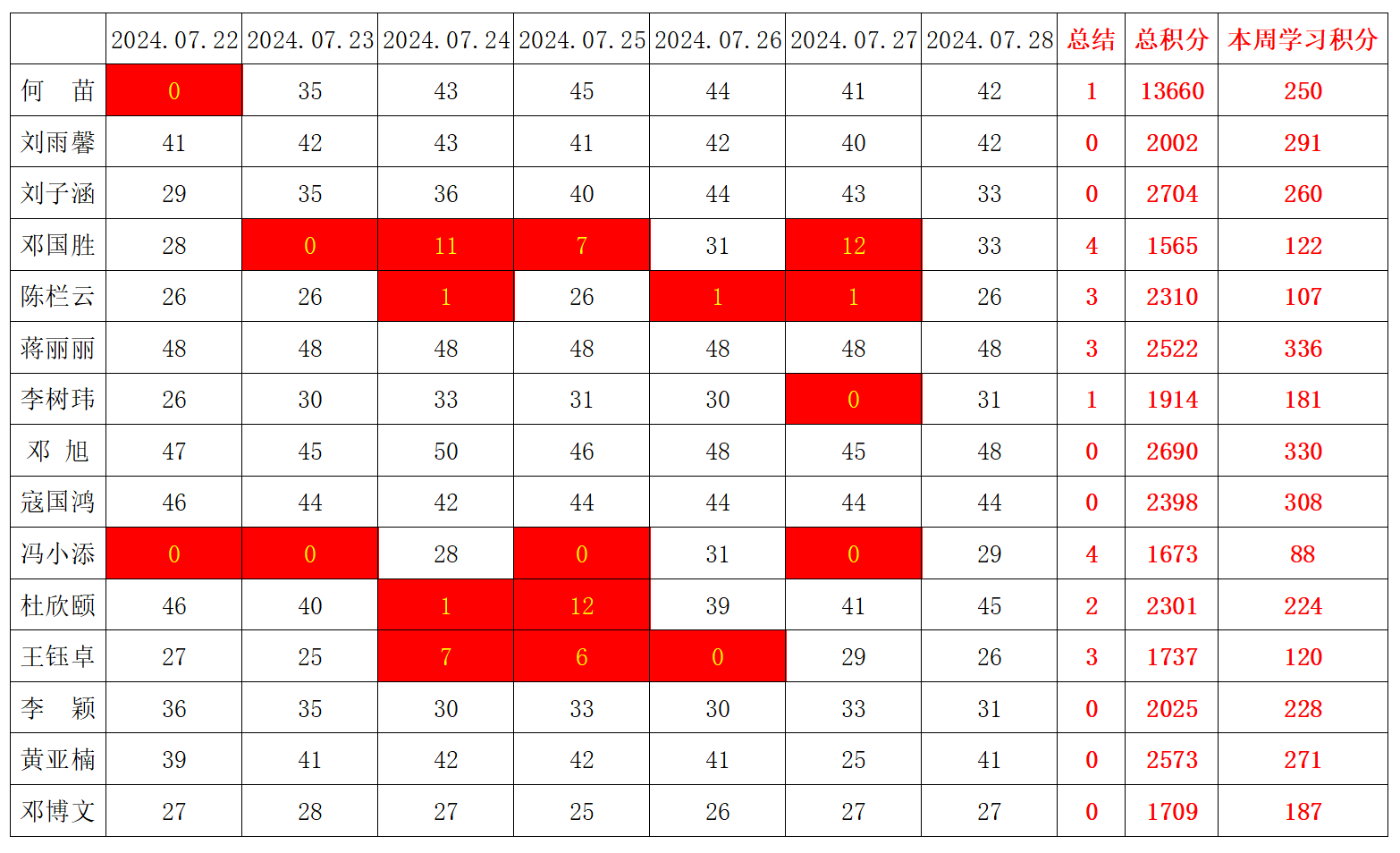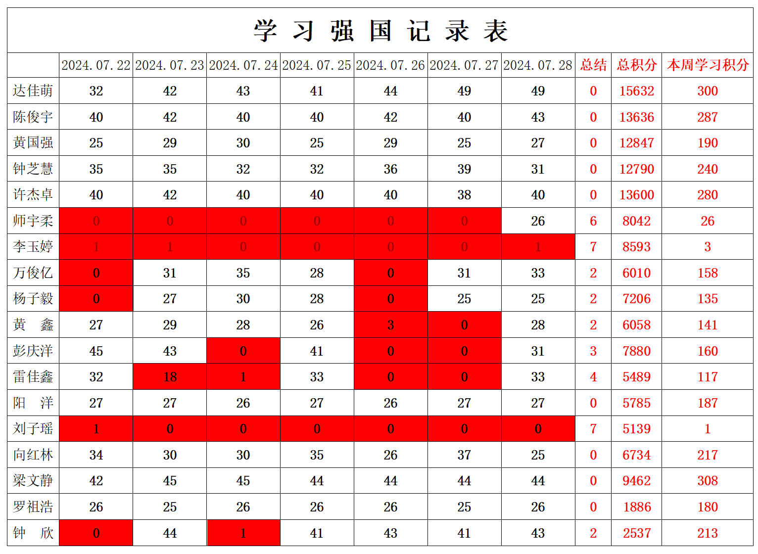 betway必威西汉姆联学生党支部2024年暑假第三周学习强国学习进度