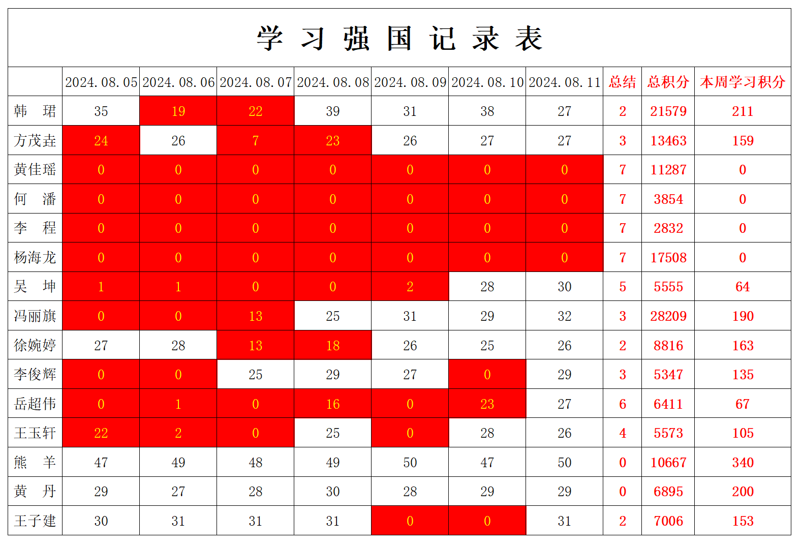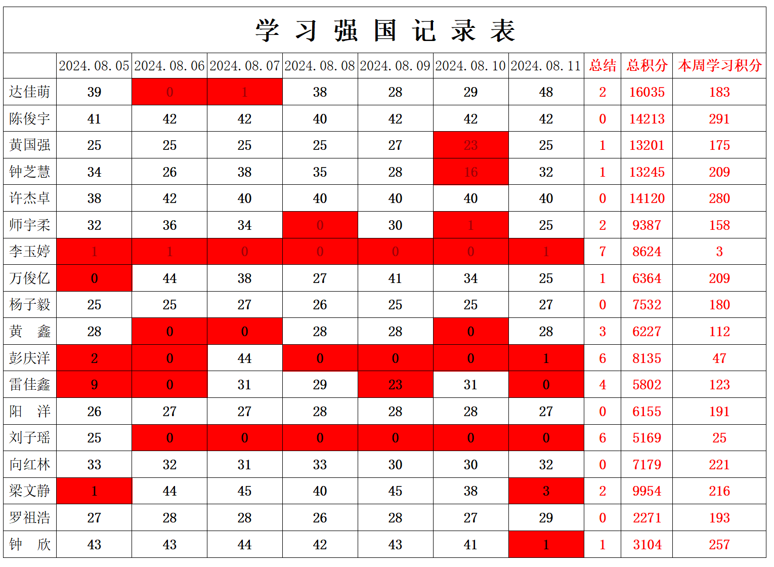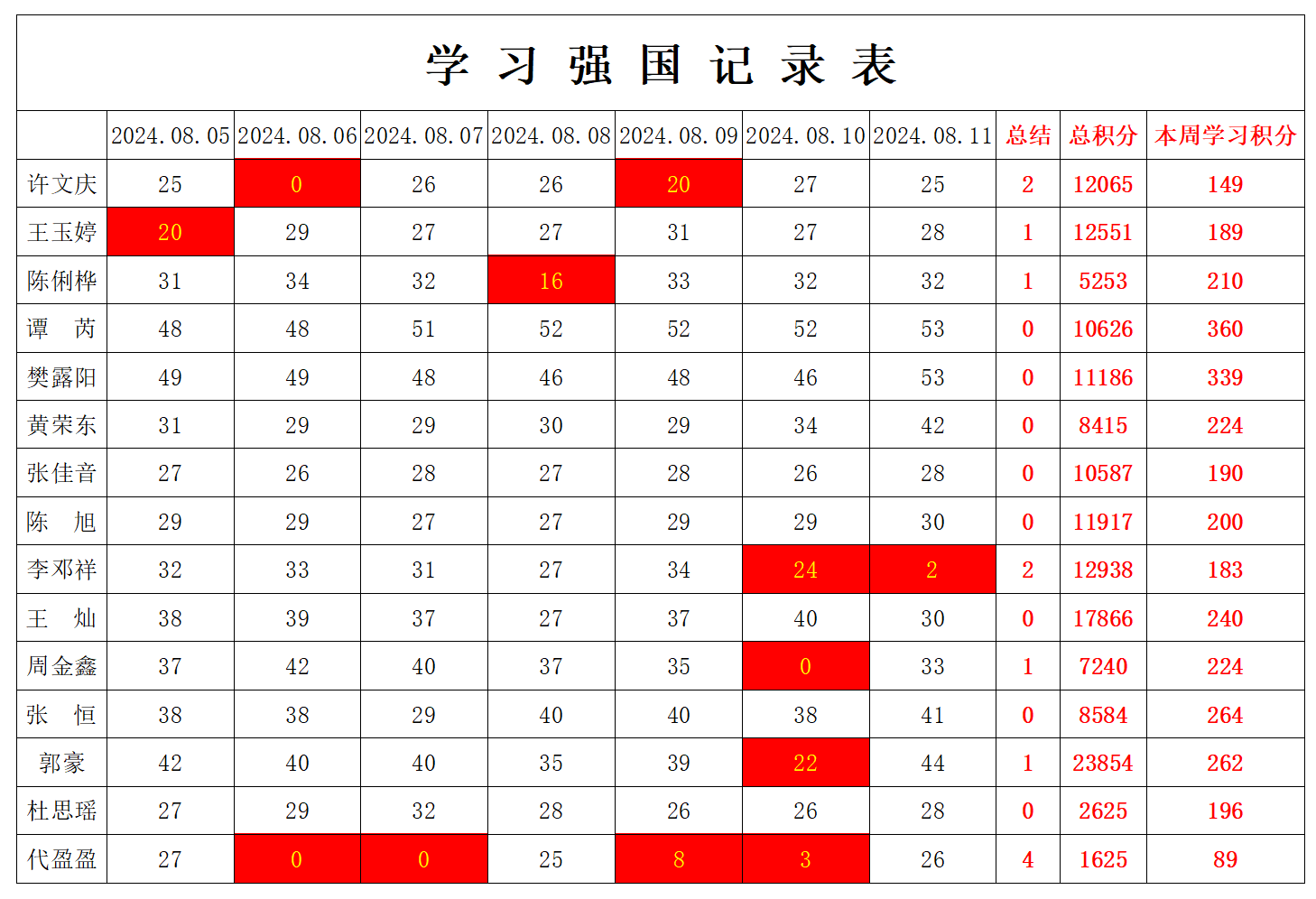 betway必威西汉姆联学生党支部2024年暑假第五周学习强国学习进度