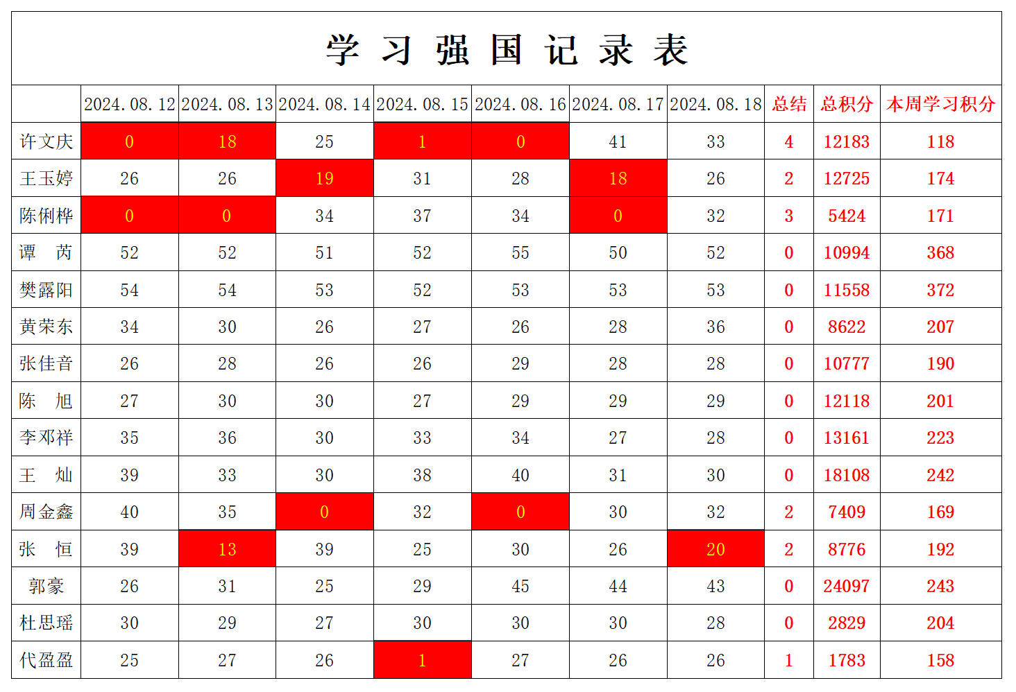betway必威西汉姆联学生党支部2024年暑假第六周学习强国学习进度