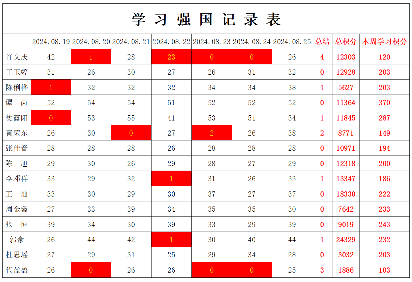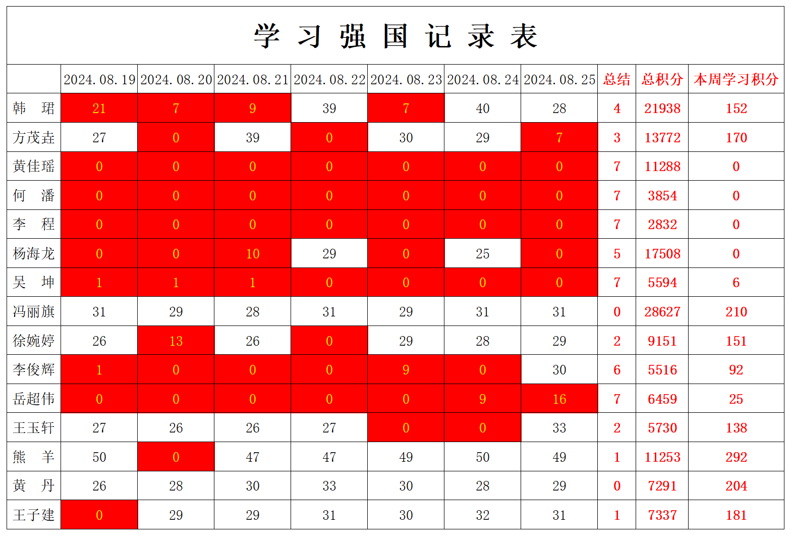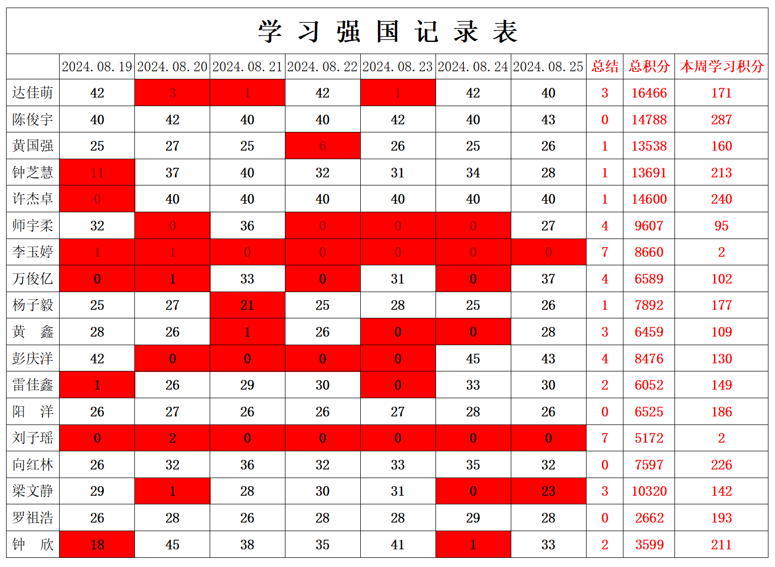 betway必威西汉姆联学生党支部2024年暑假第七周学习强国学习进度
