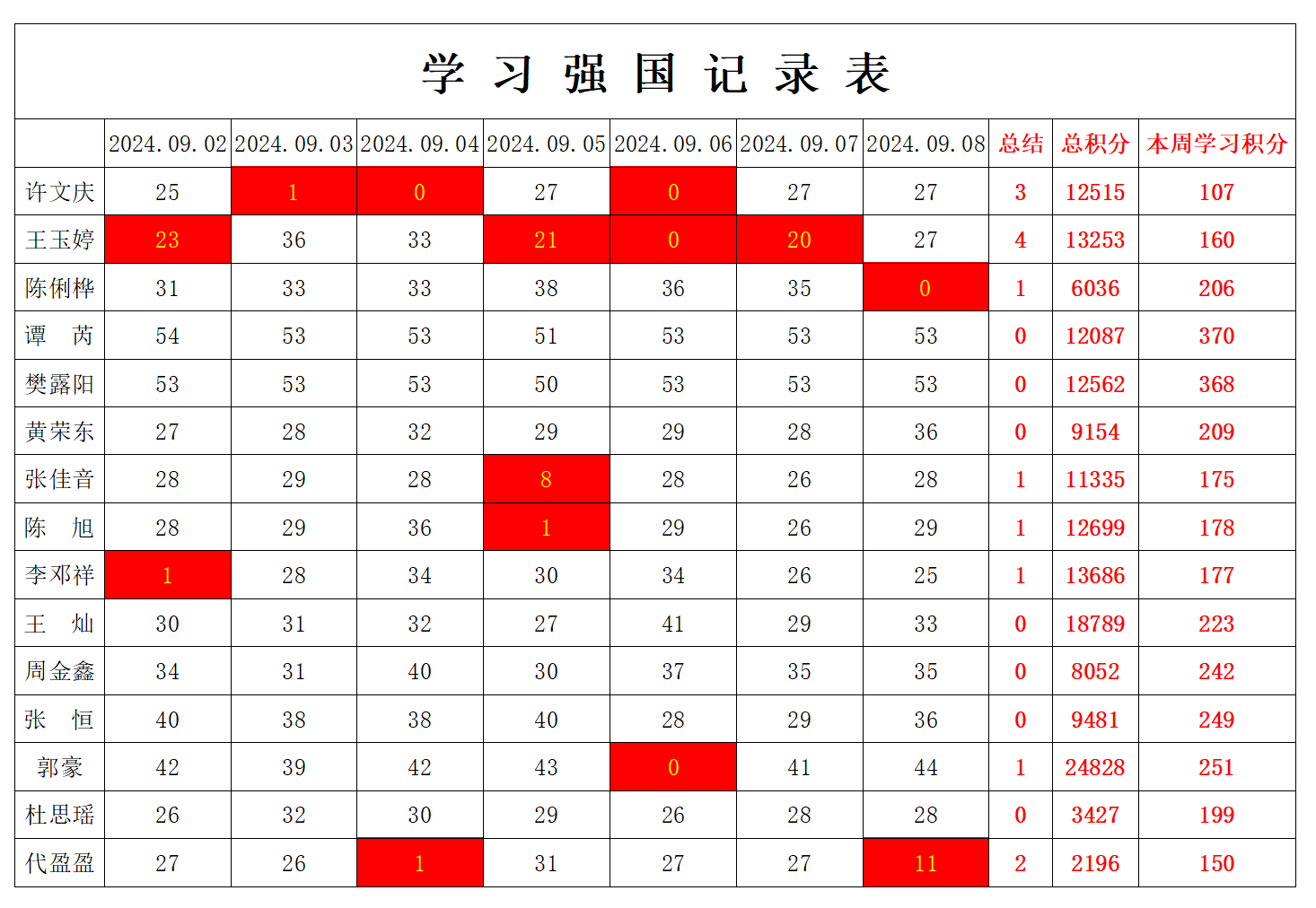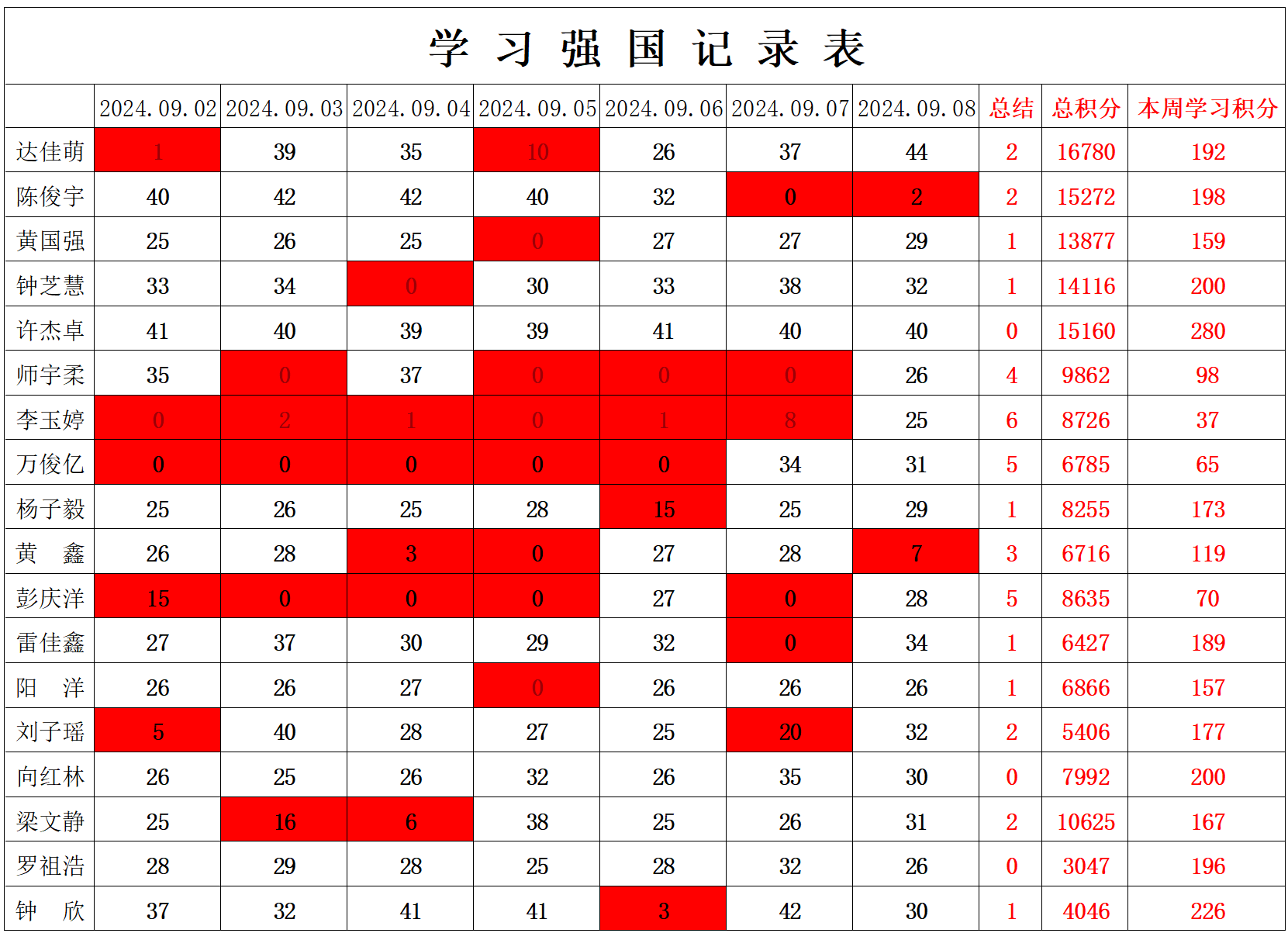 betway必威西汉姆联学生党支部2024-2025学年第一学期第一周学习强国学习进度