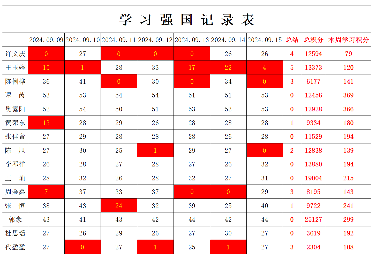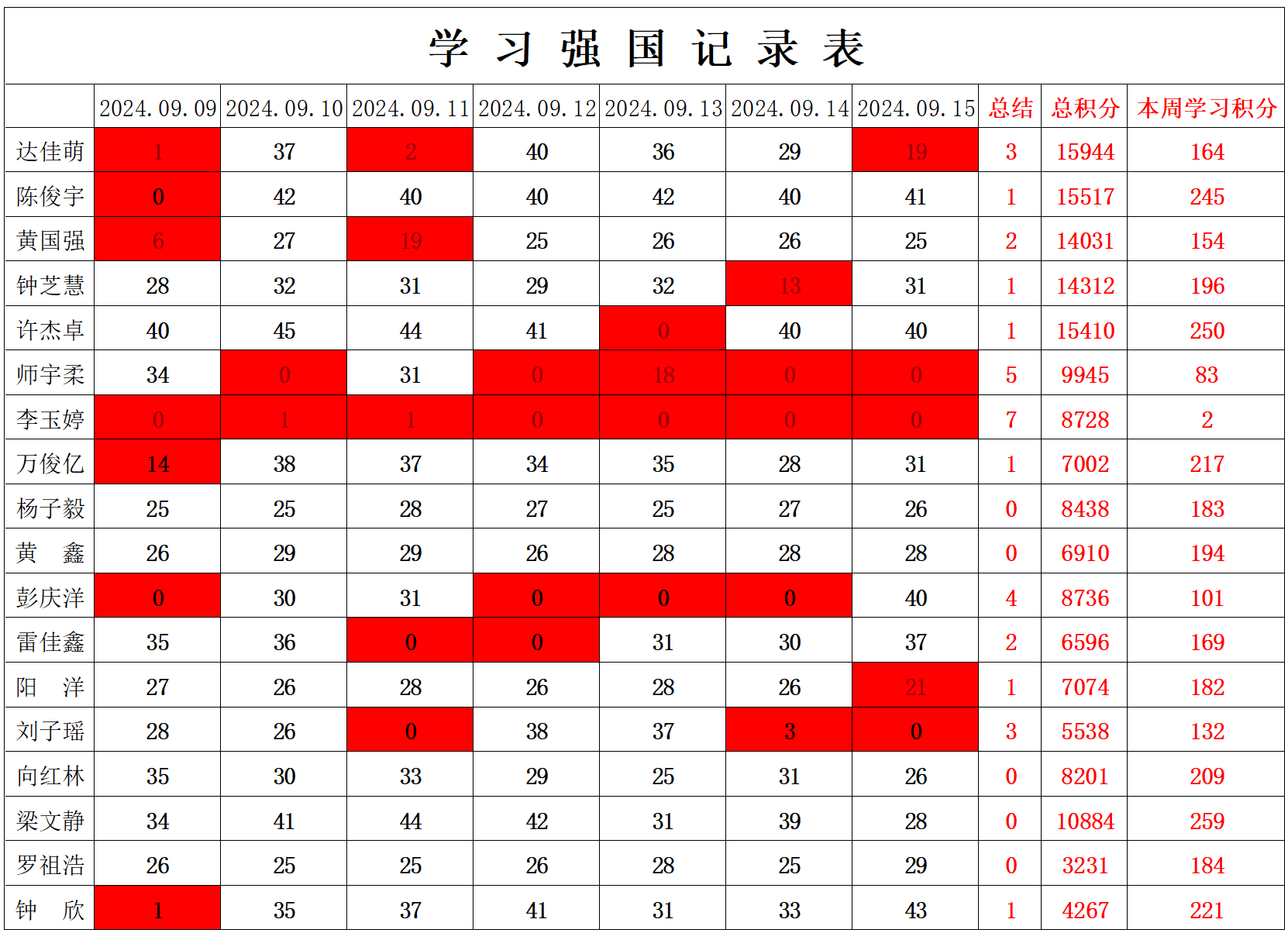 betway必威西汉姆联学生党支部2024-2025学年第一学期第二周学习强国学习进度
