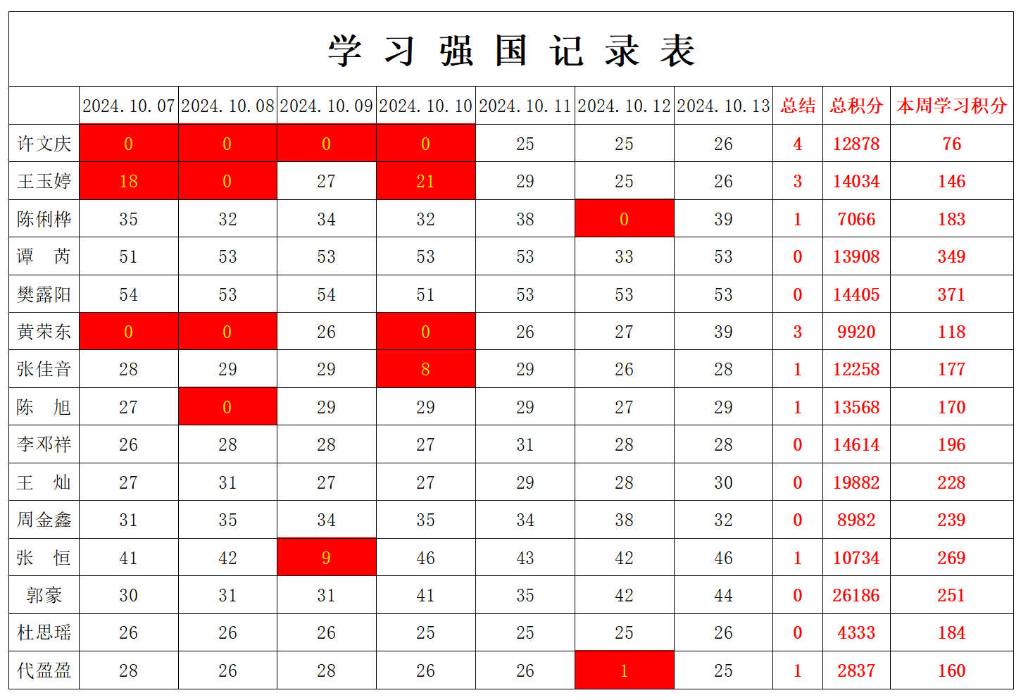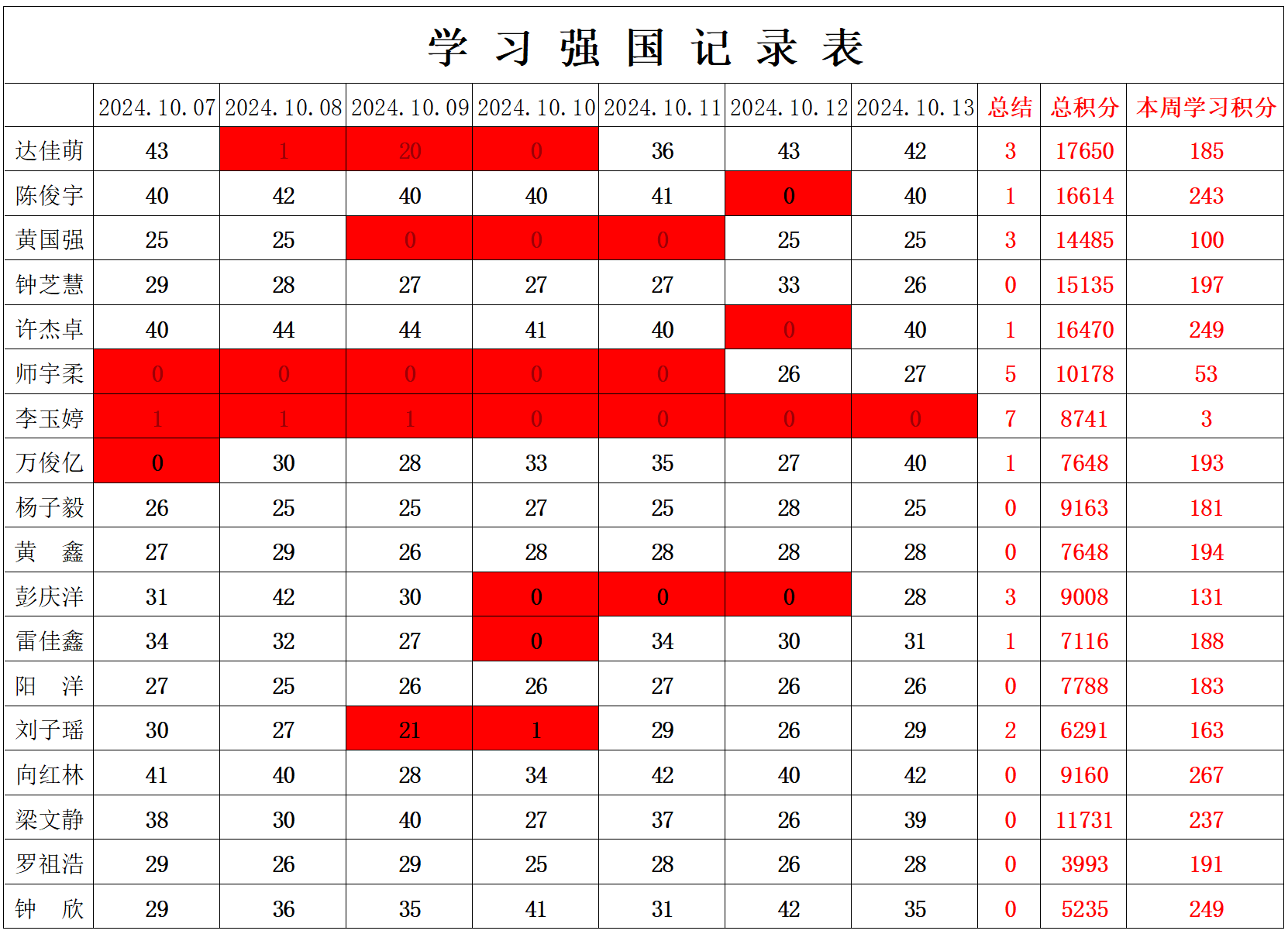 betway必威西汉姆联学生党支部2024-2025学年第一学期第六周学习强国学习进度