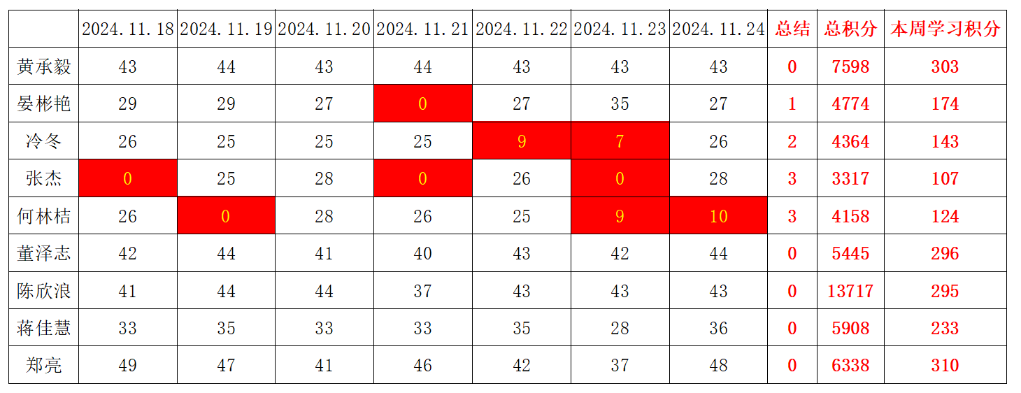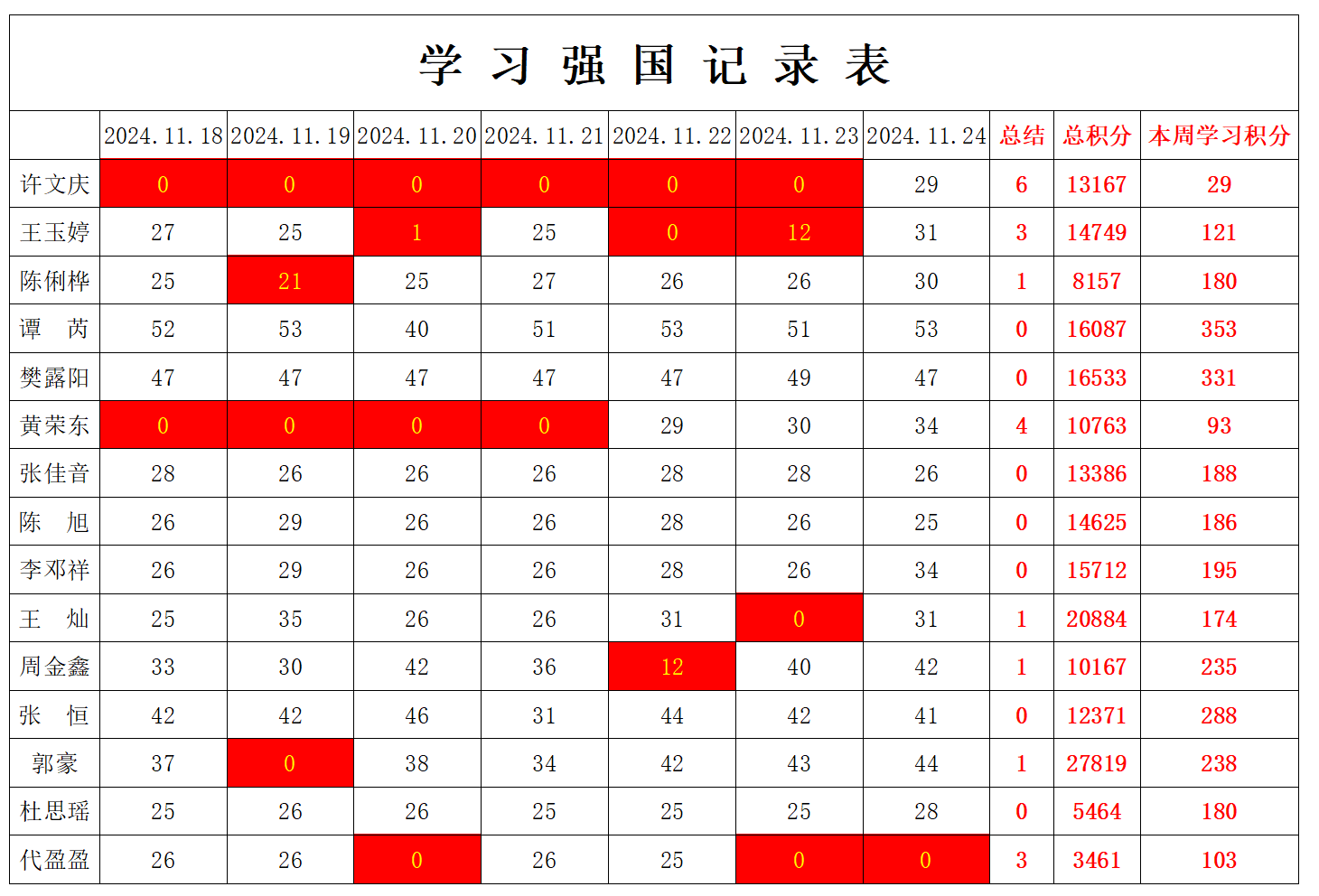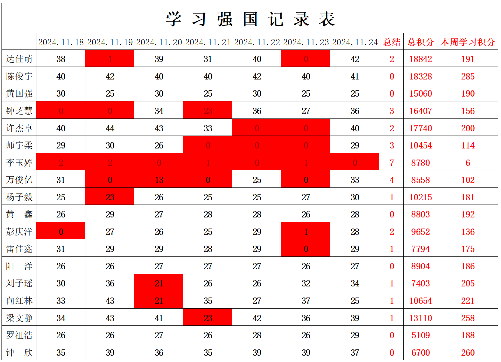 betway必威西汉姆联学生党支部2024-2025学年第一学期第十三周学习强国学习进度