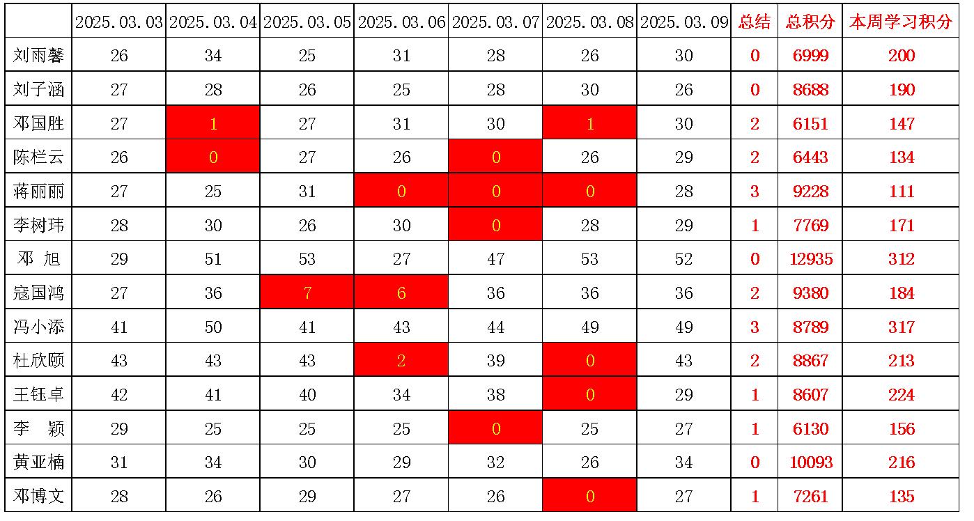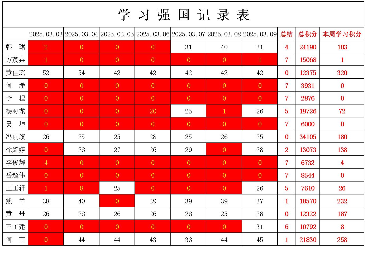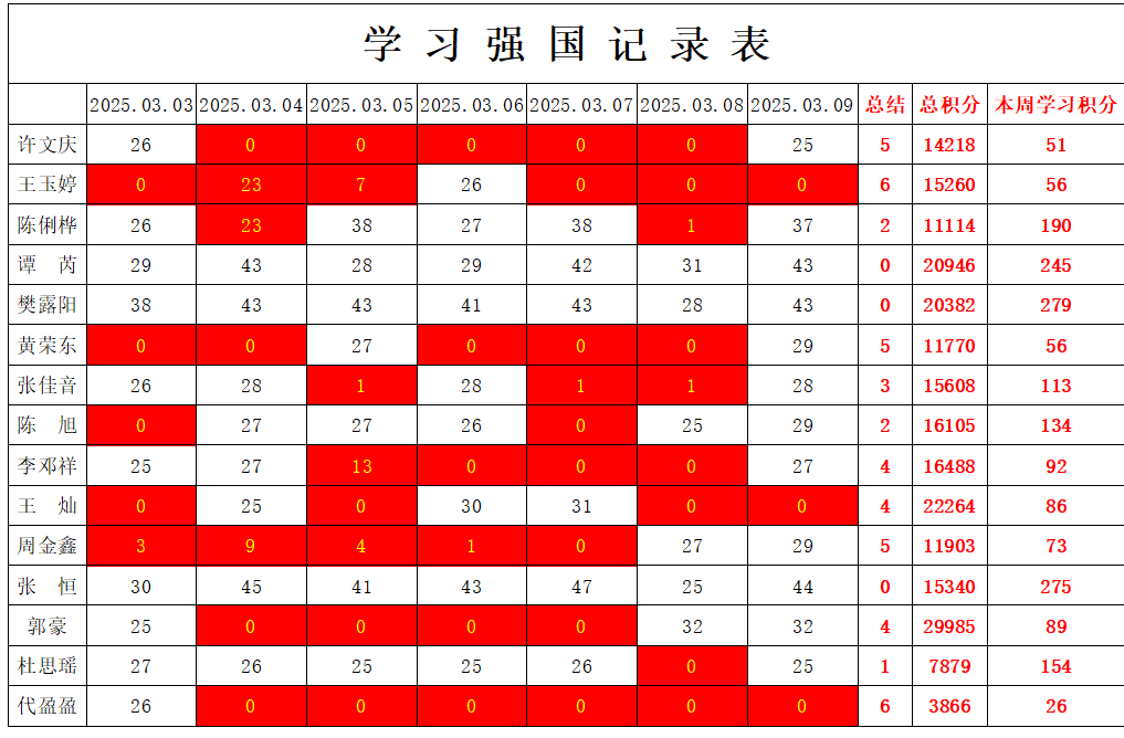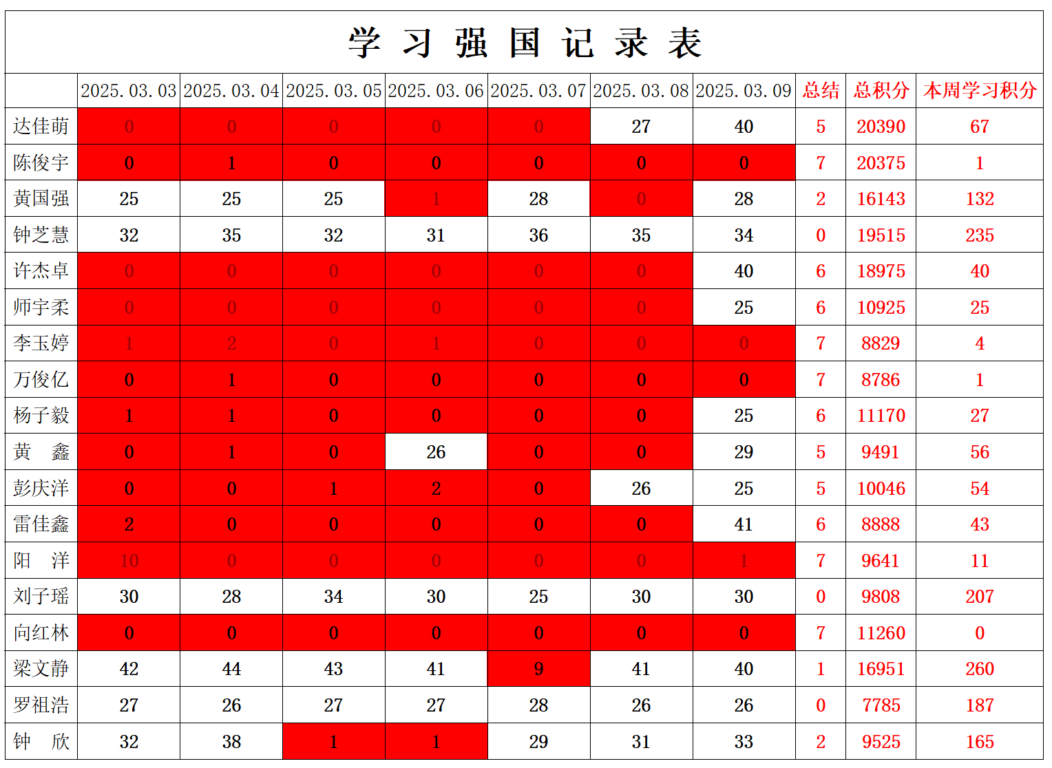 betway必威西汉姆联学生党支部2024-2025学年第二学期第二周学习强国学习进度