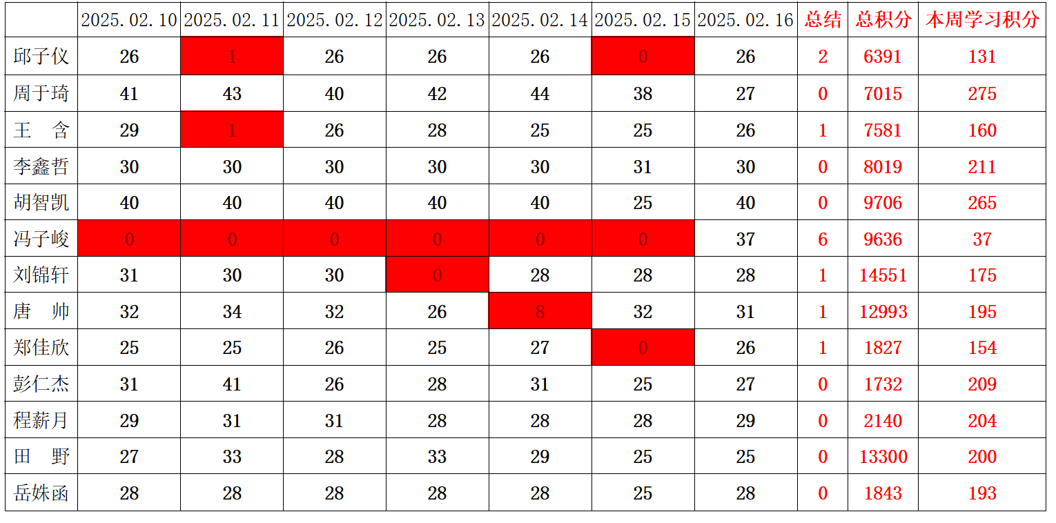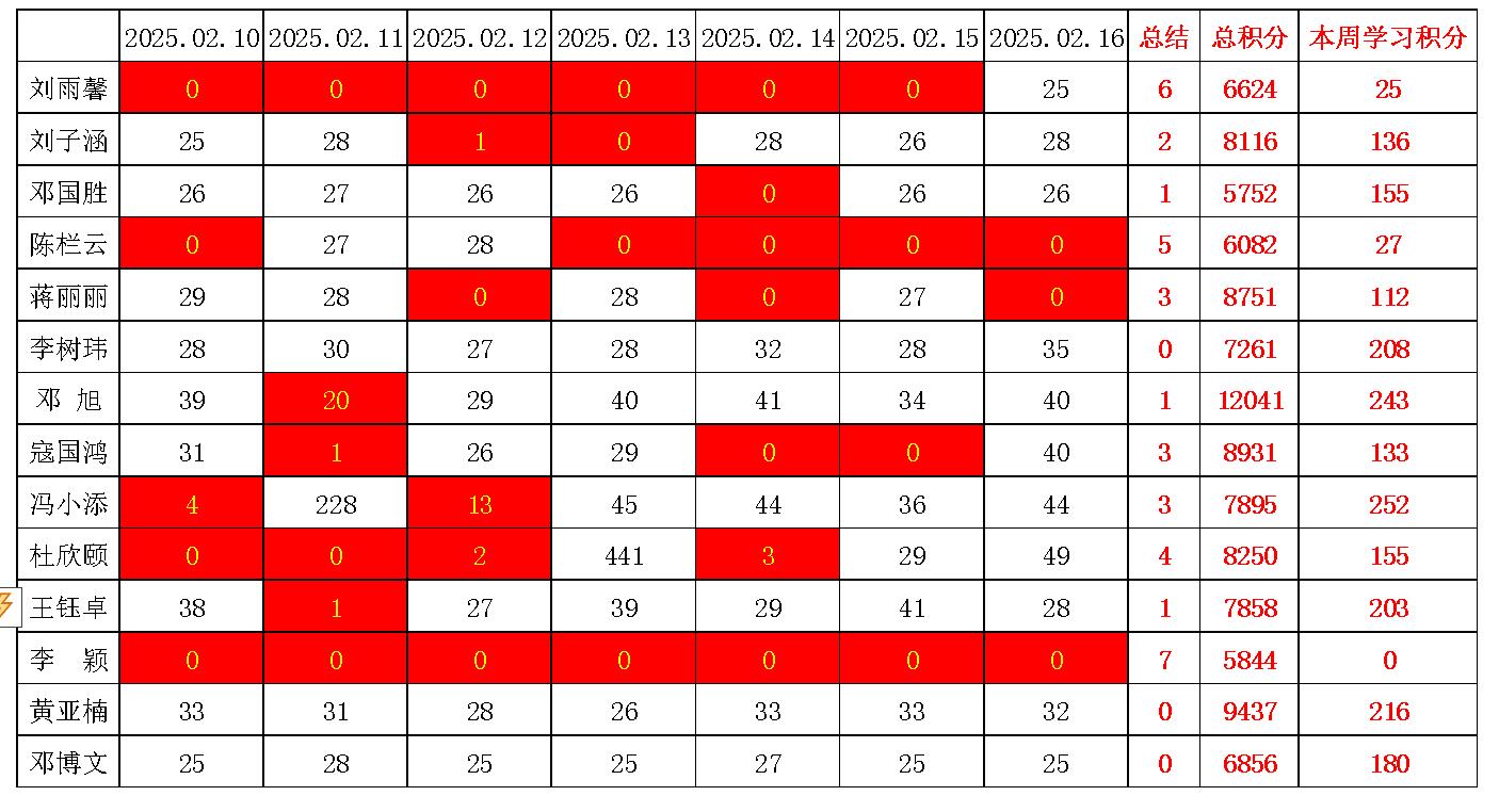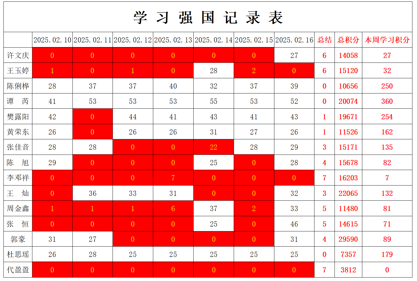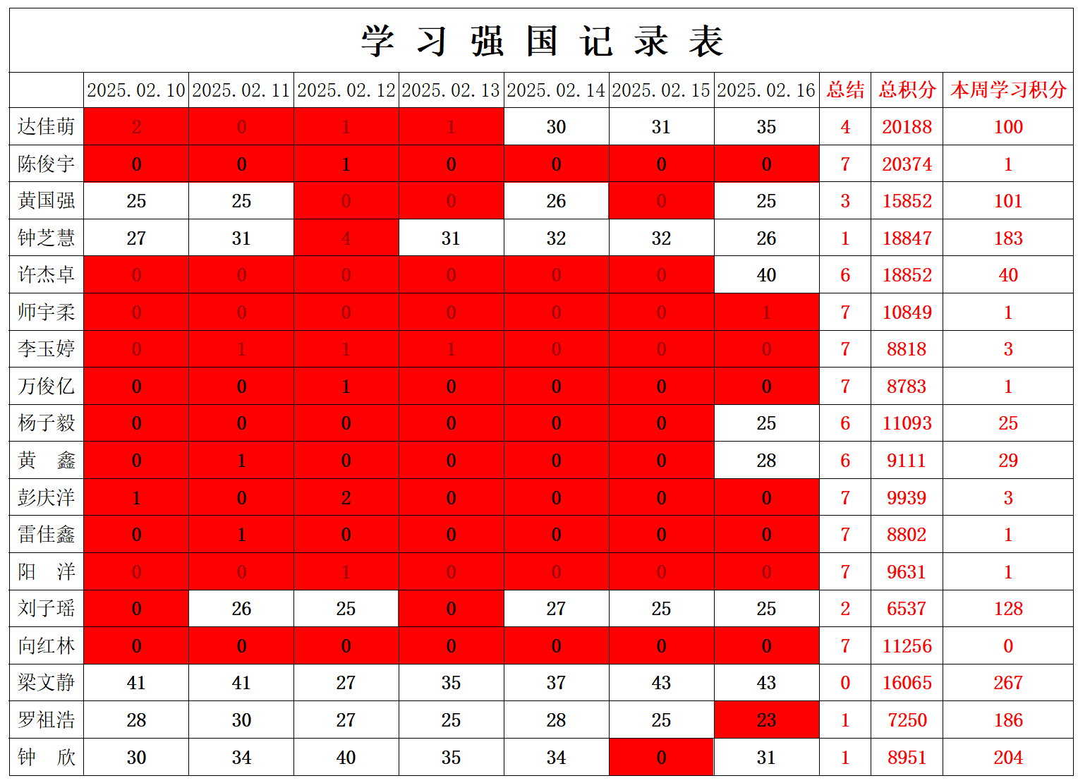 betway必威西汉姆联学生党支部2025年寒假第五周学习强国学习进度