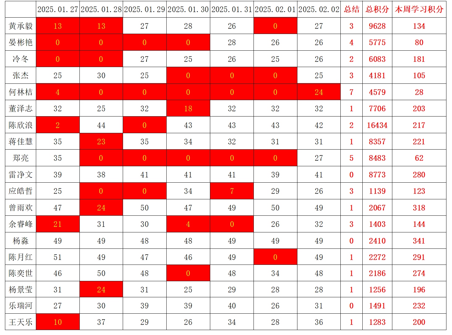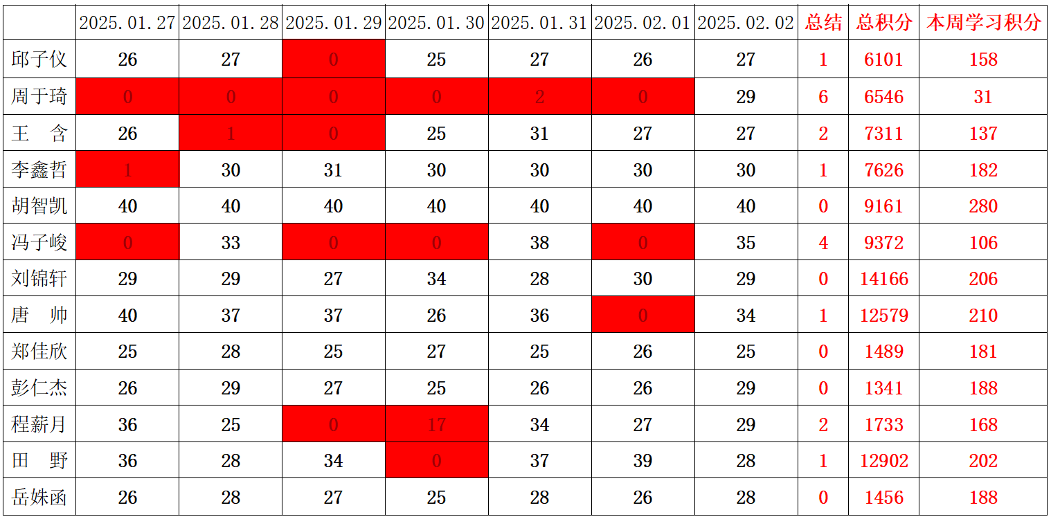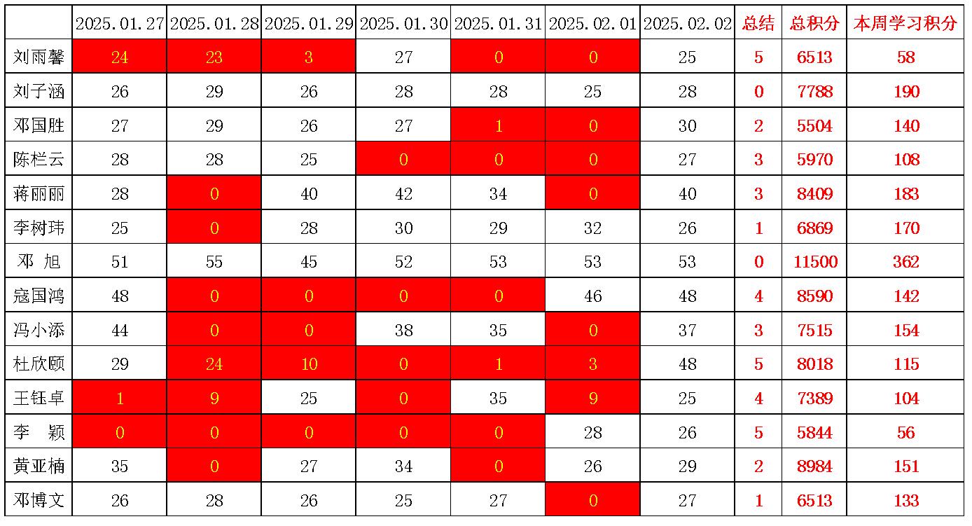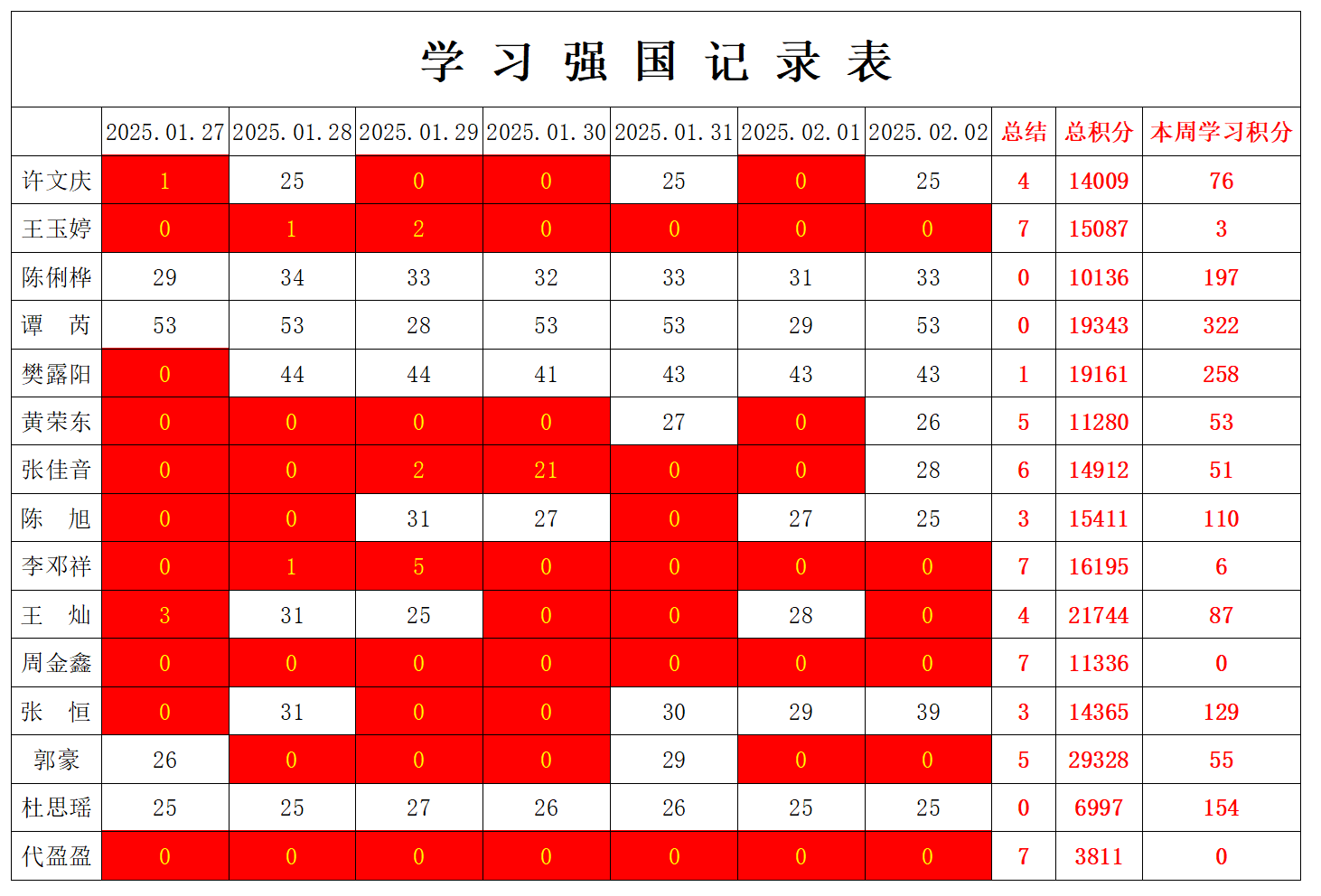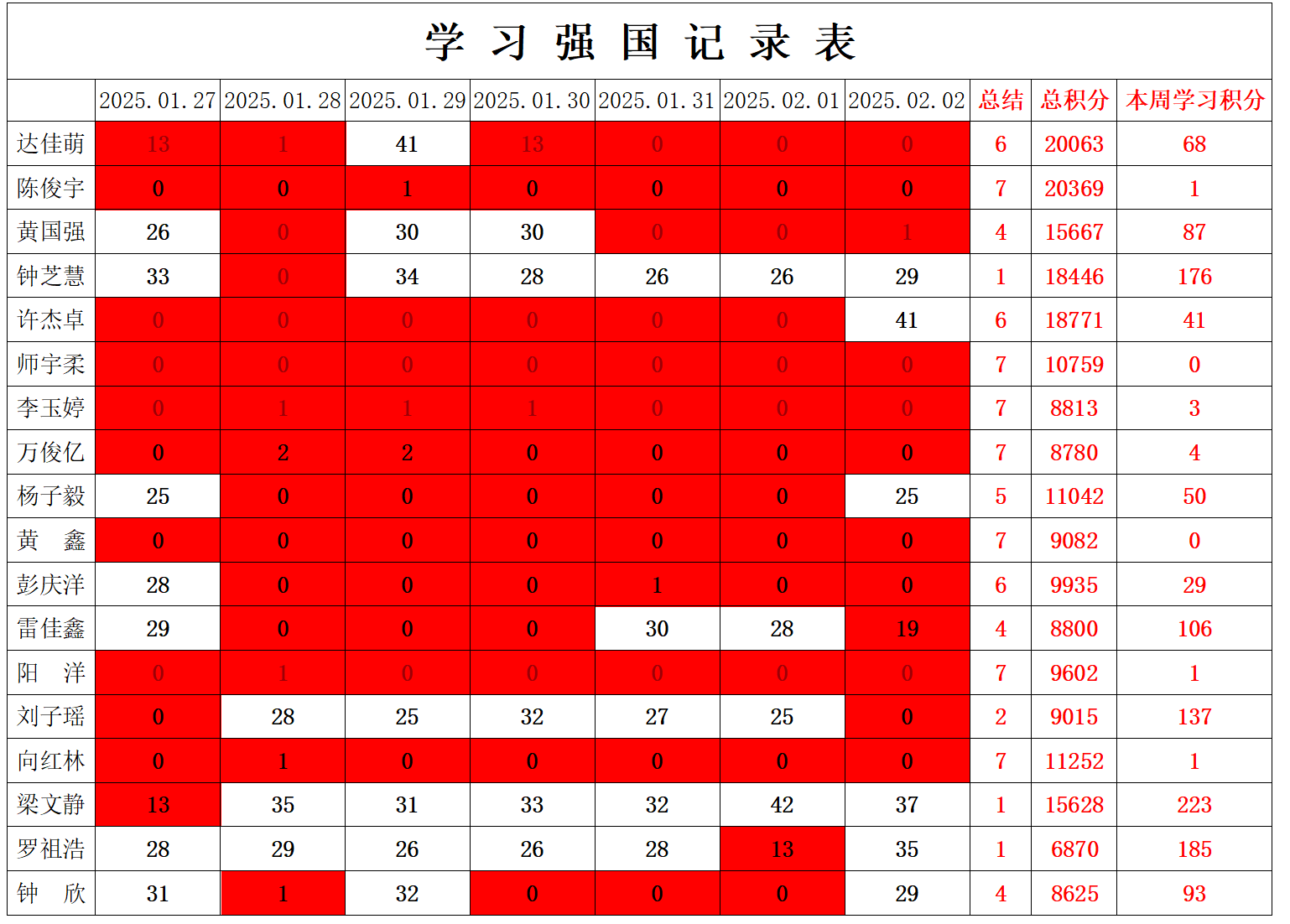 betway必威西汉姆联学生党支部2025年寒假第三周学习强国学习进度
