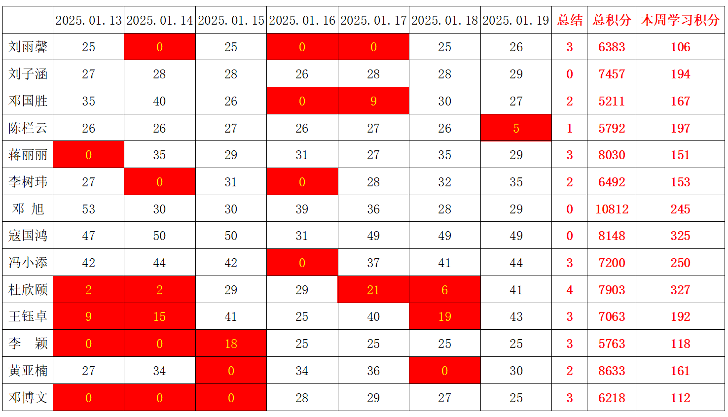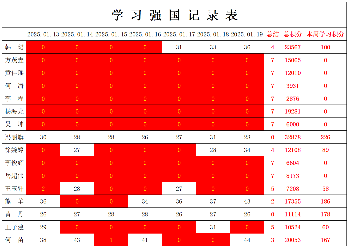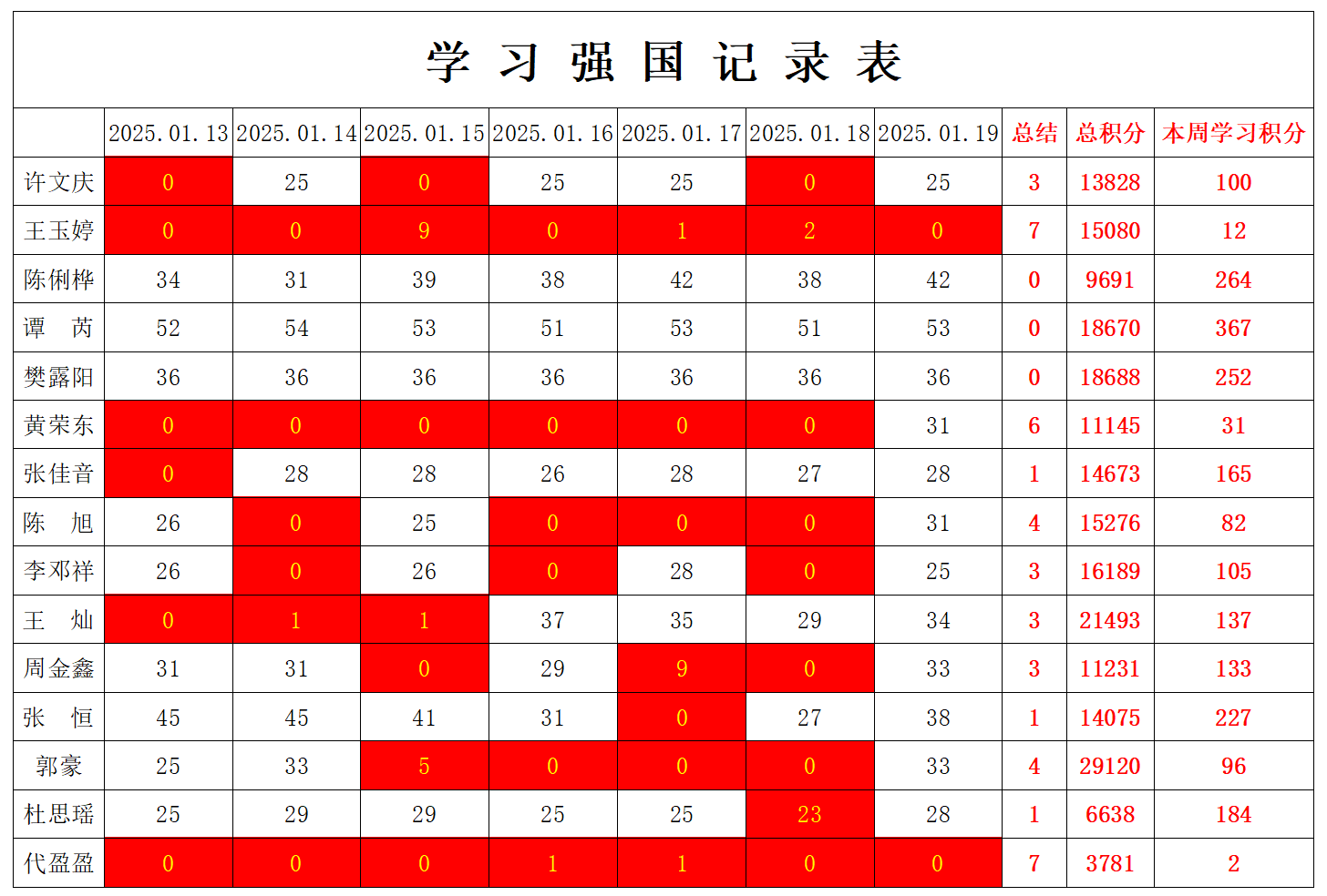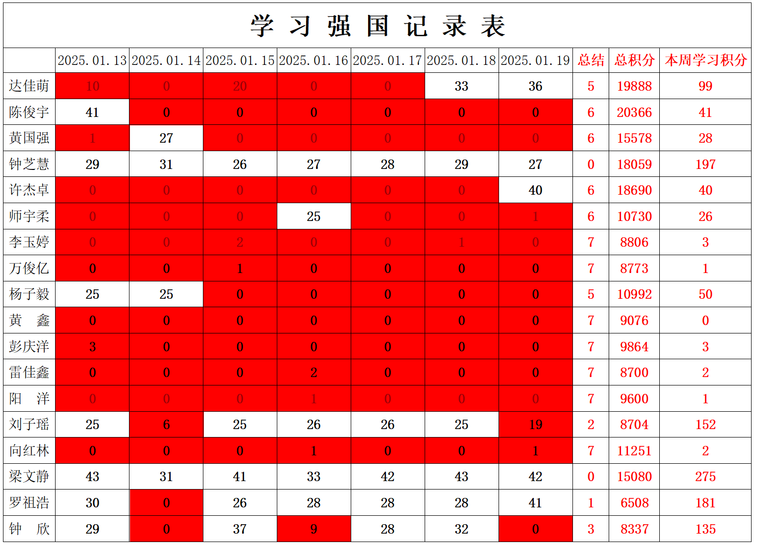 betway必威西汉姆联学生党支部2025年寒假第一周学习强国学习进度