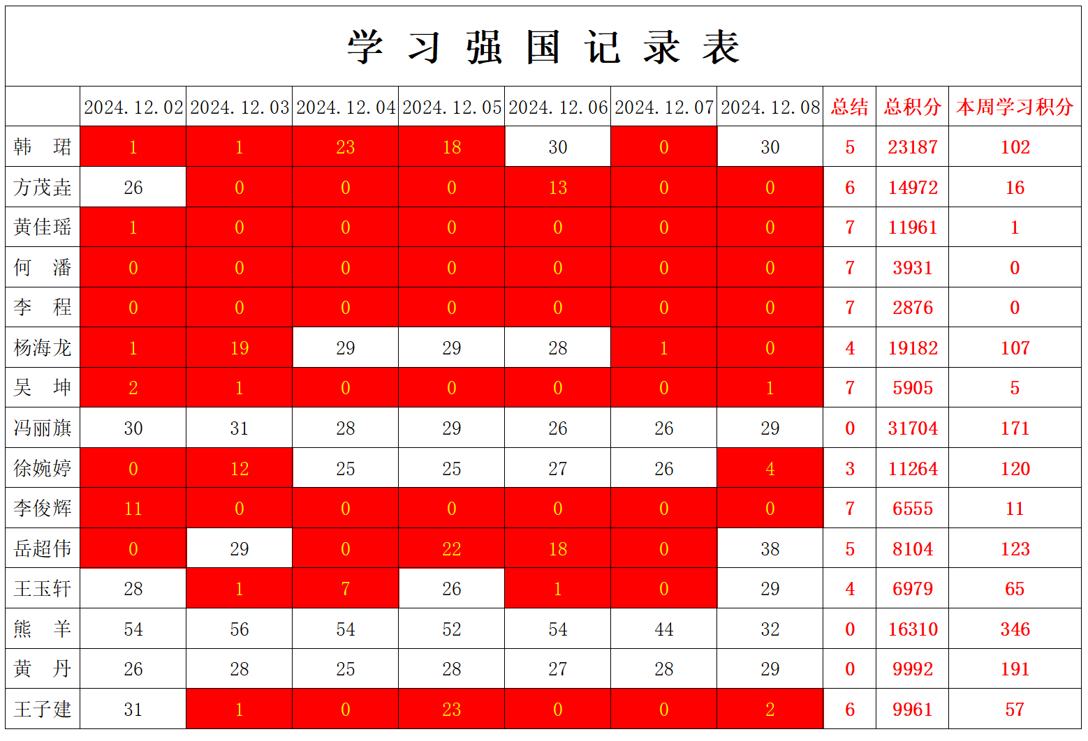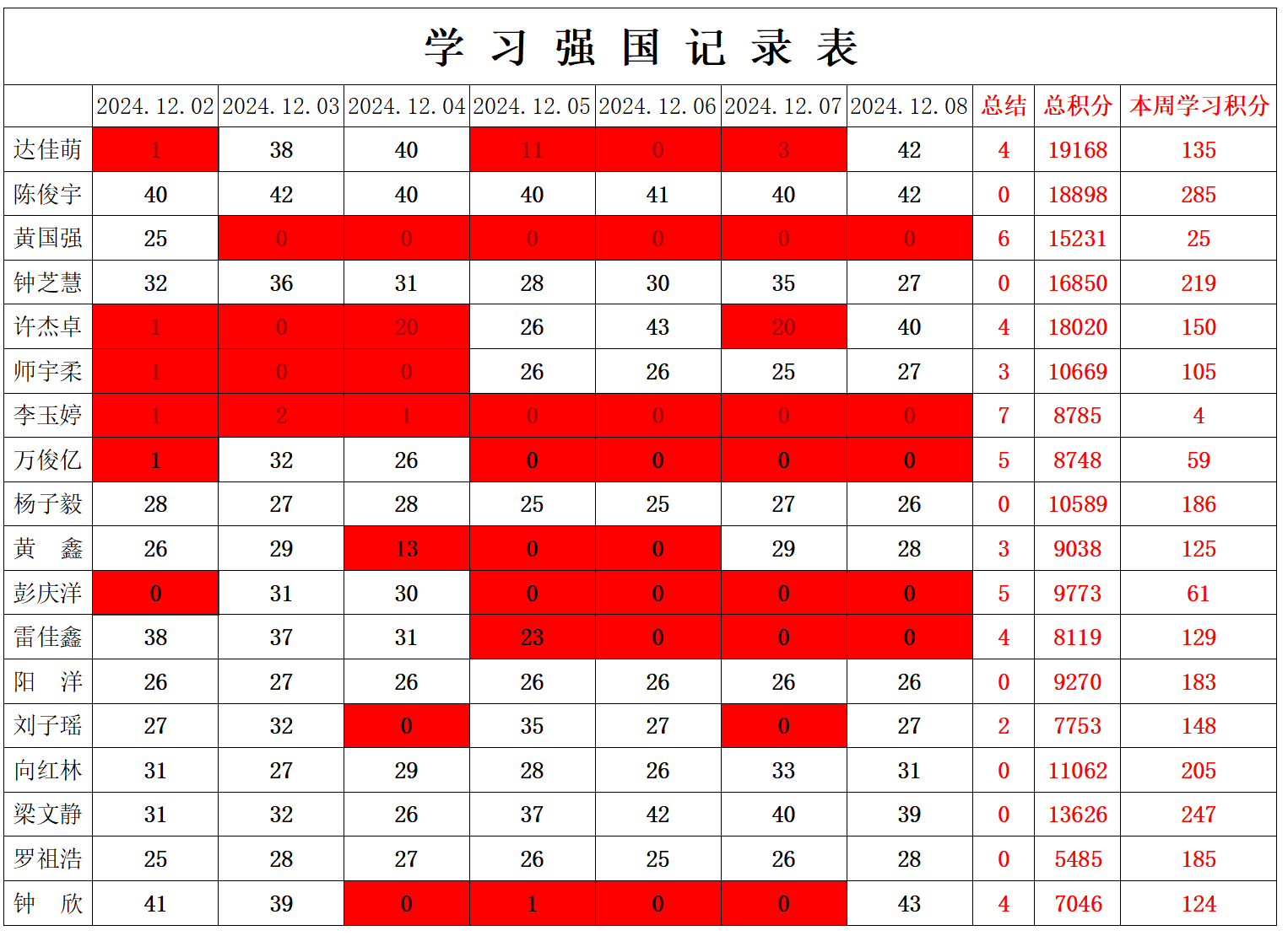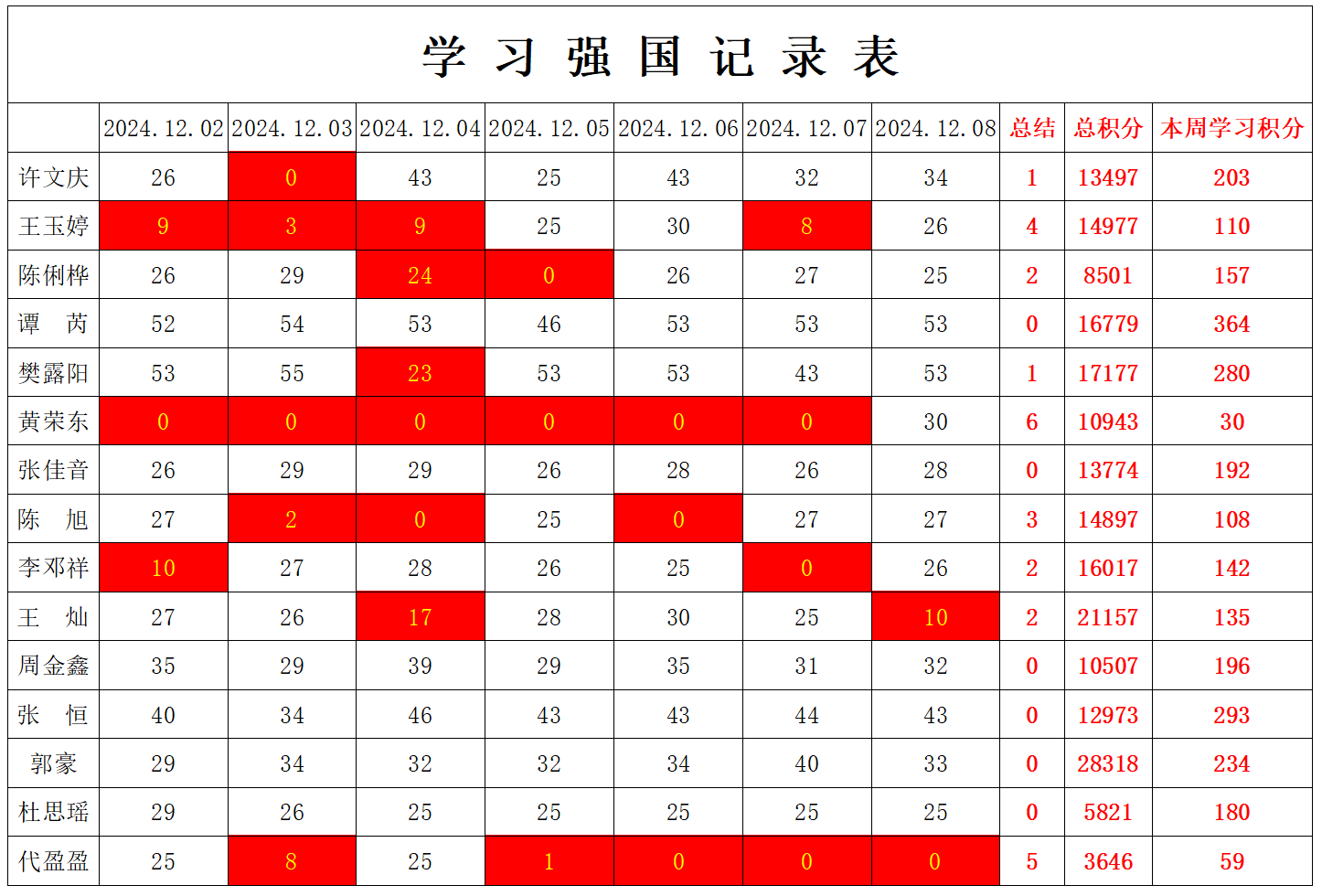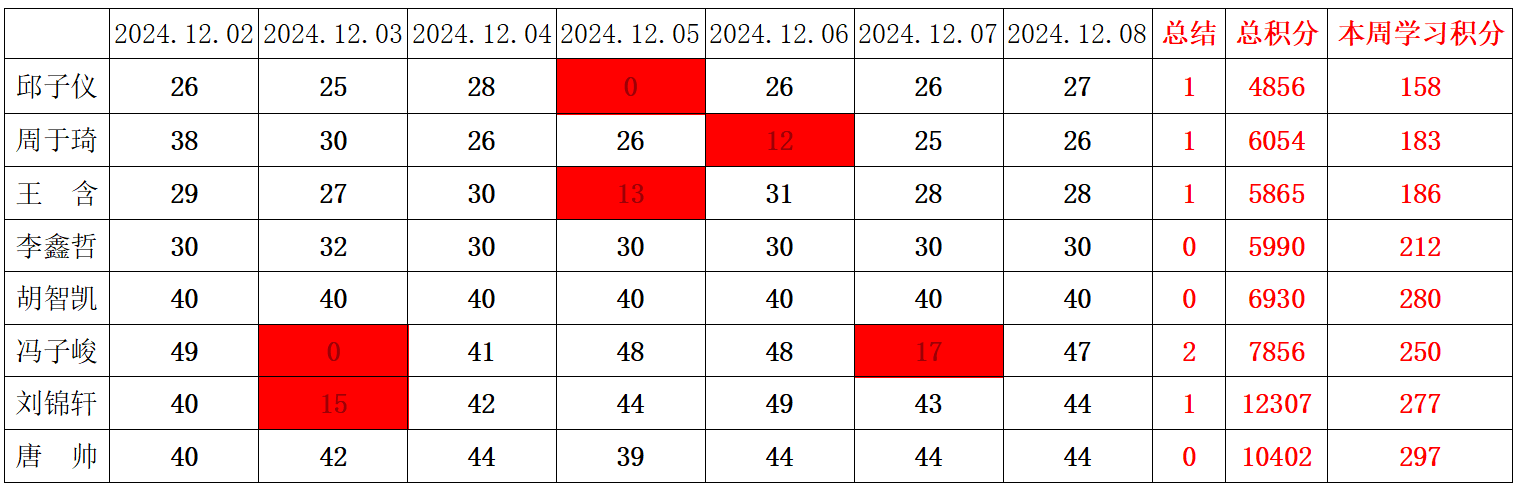 betway必威西汉姆联学生党支部2024-2025学年第一学期第十五周学习强国学习进度