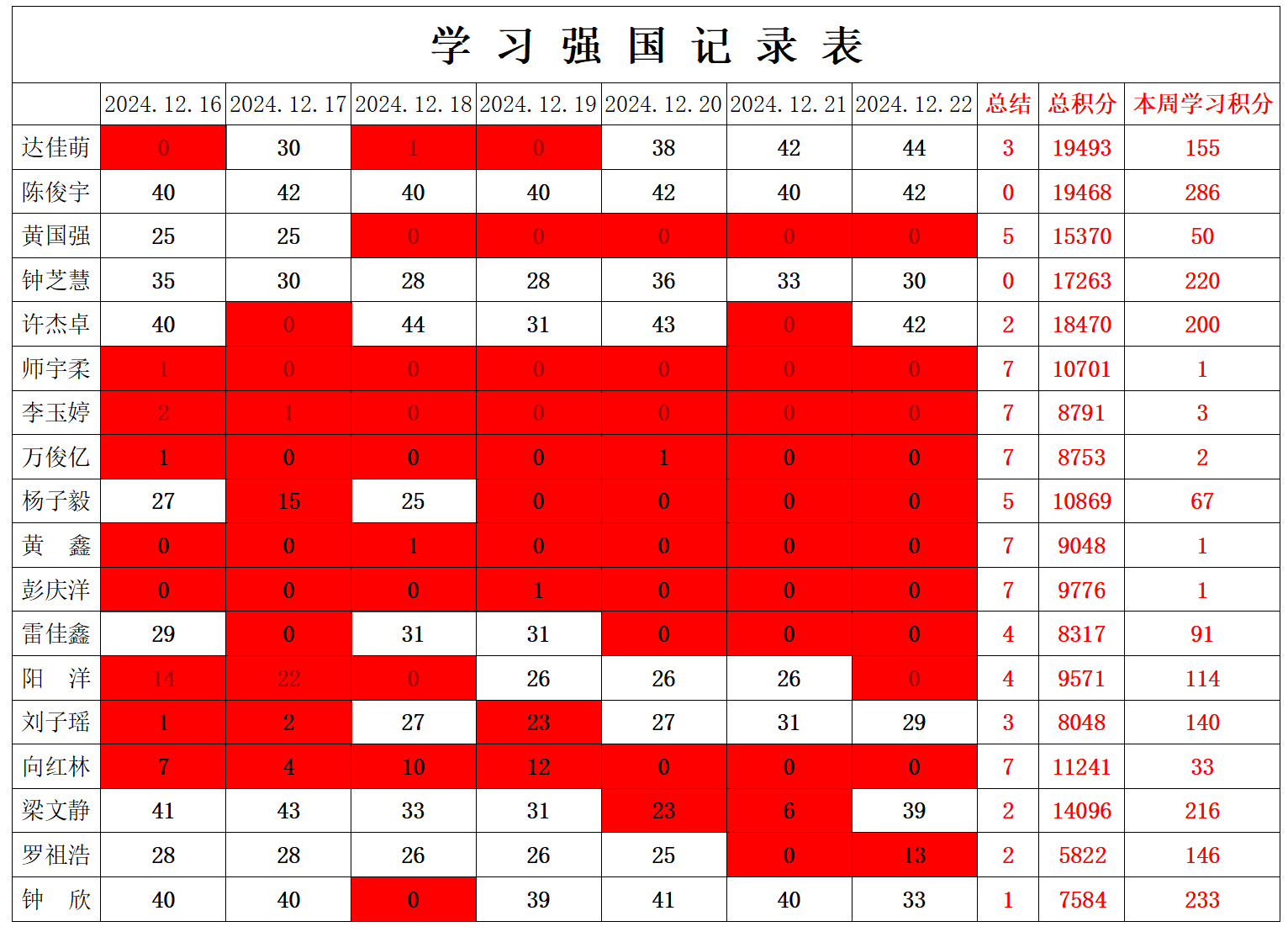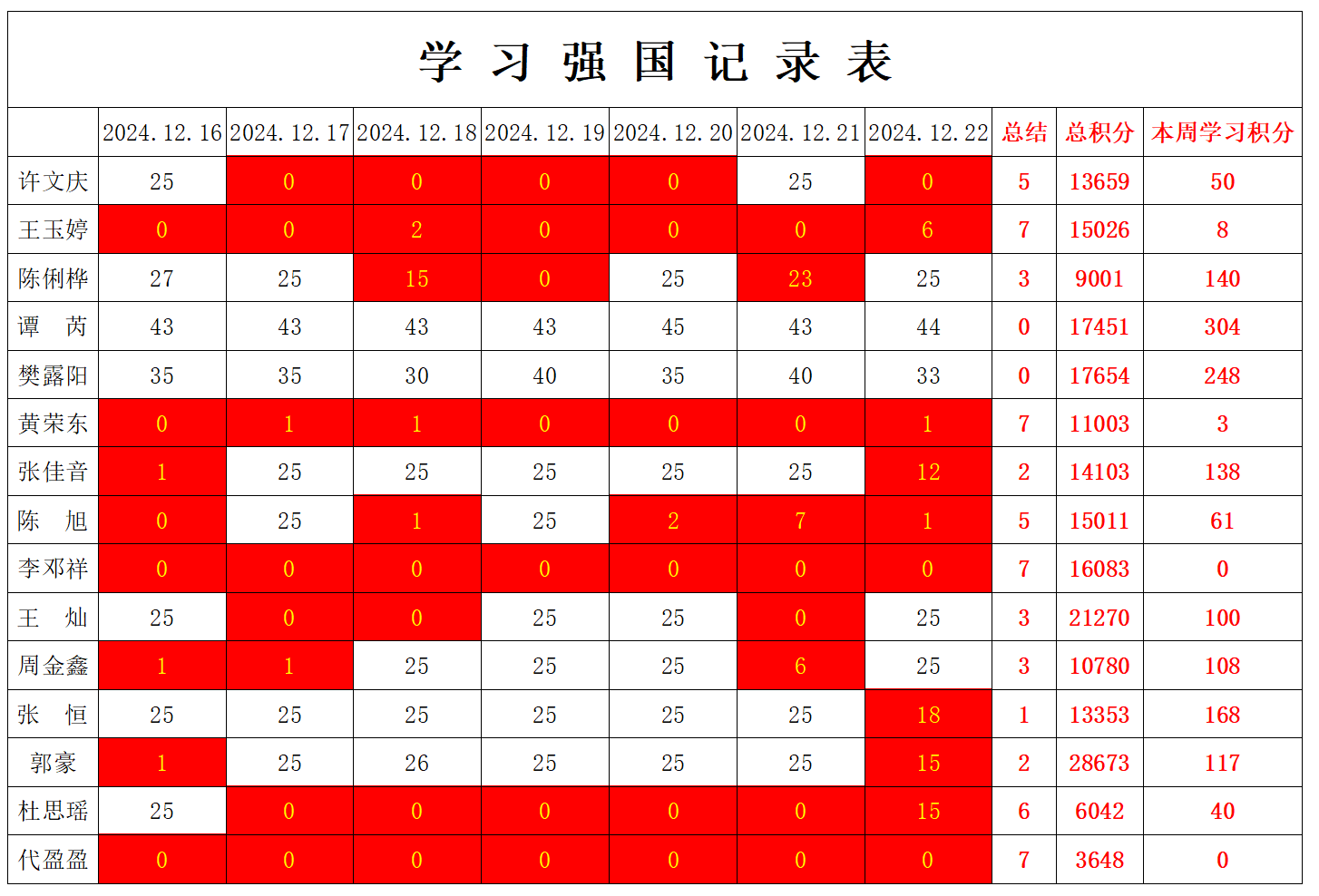 betway必威西汉姆联学生党支部2024-2025学年第一学期第十七周学习强国学习进度