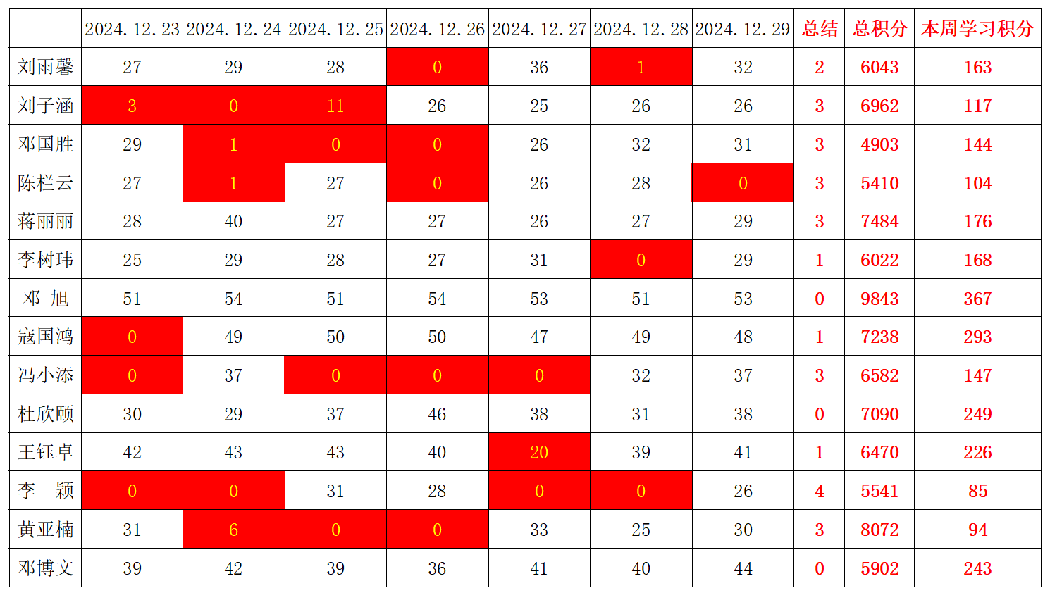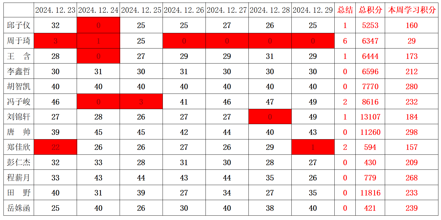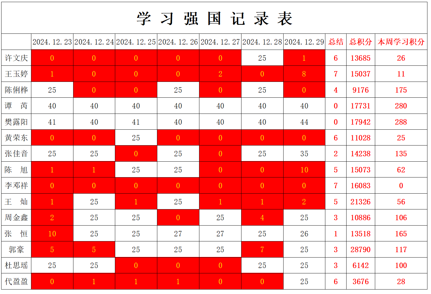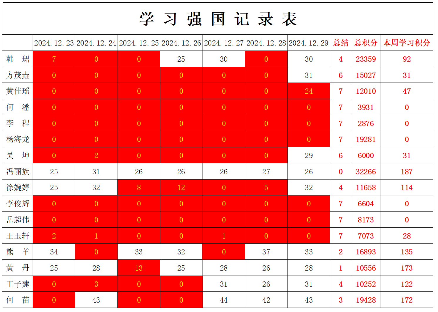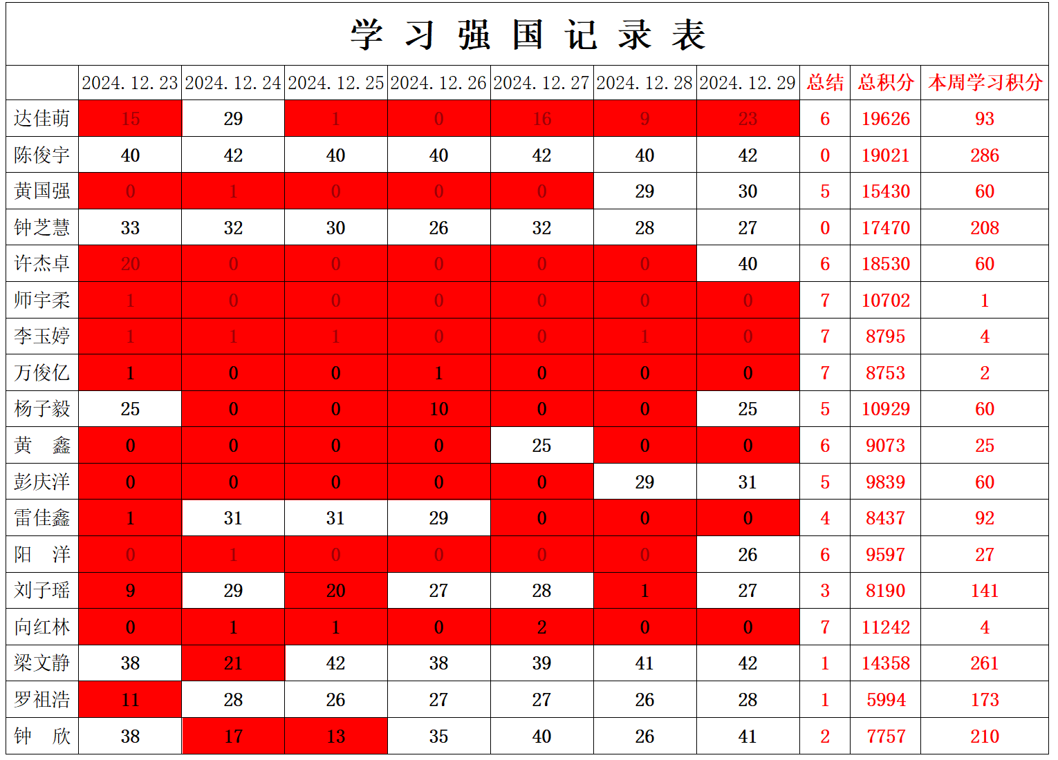 betway必威西汉姆联学生党支部2024-2025学年第一学期第十八周学习强国学习进度