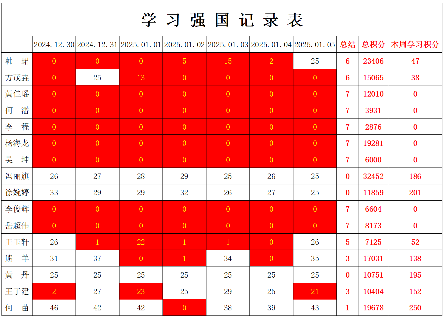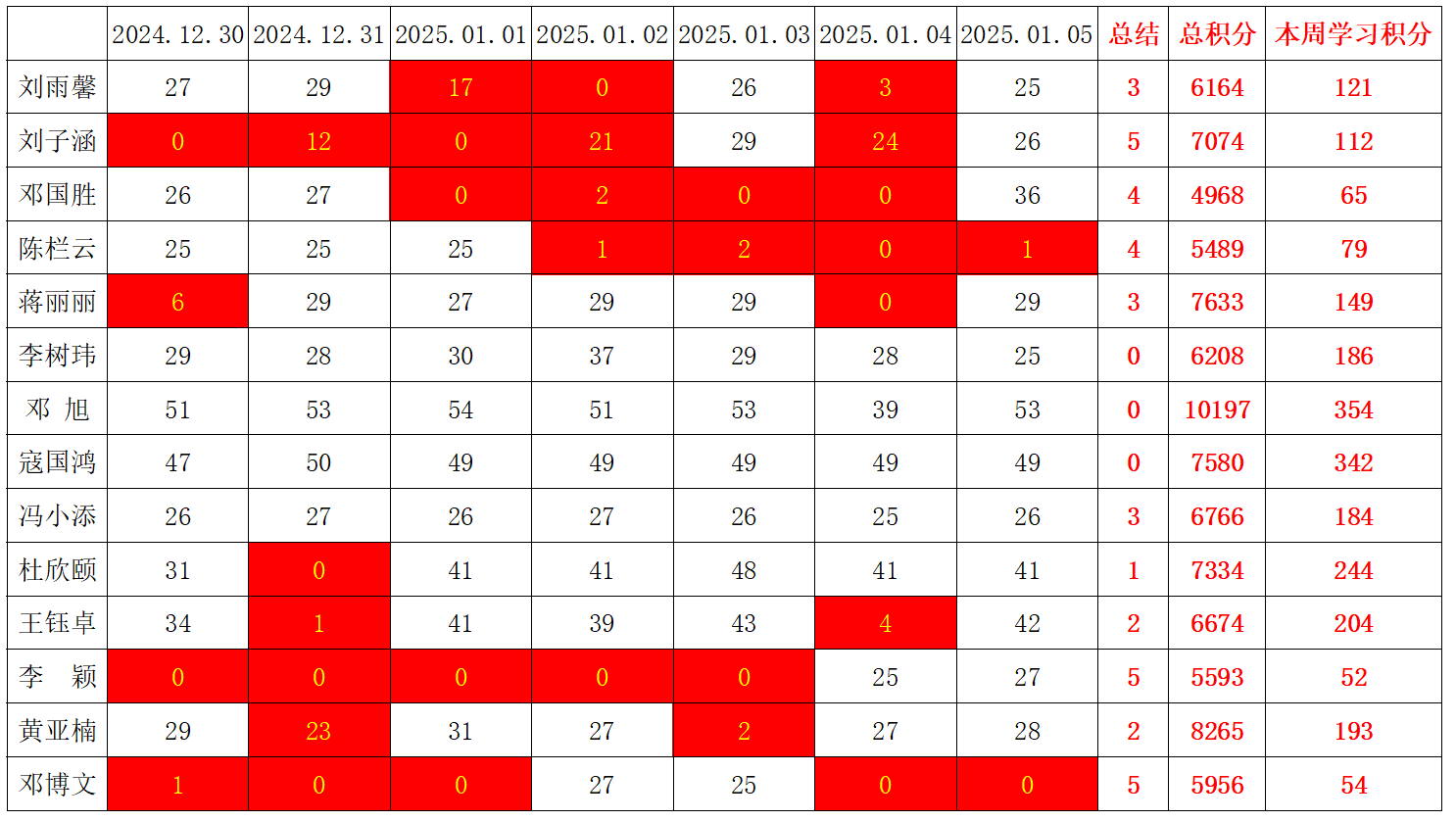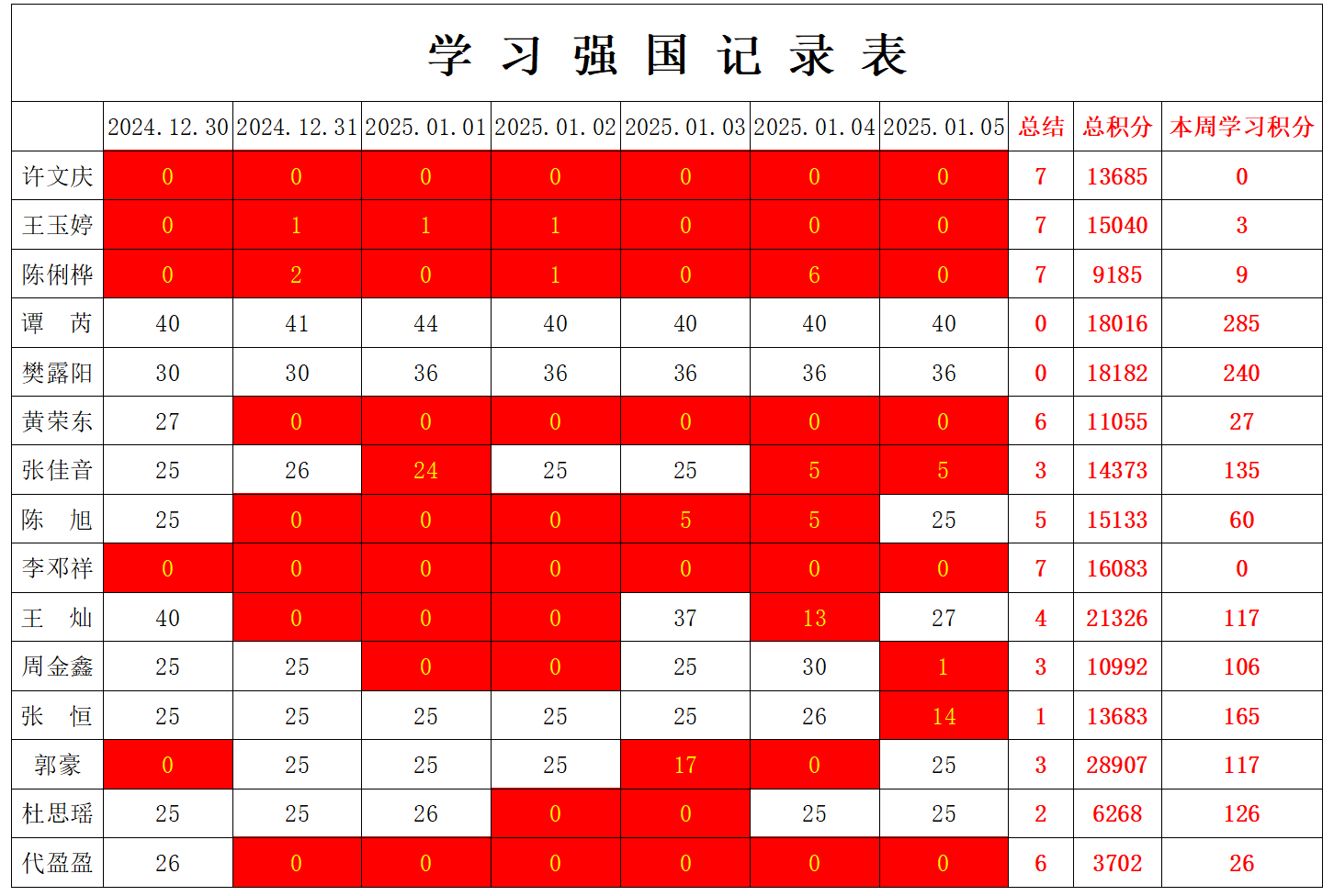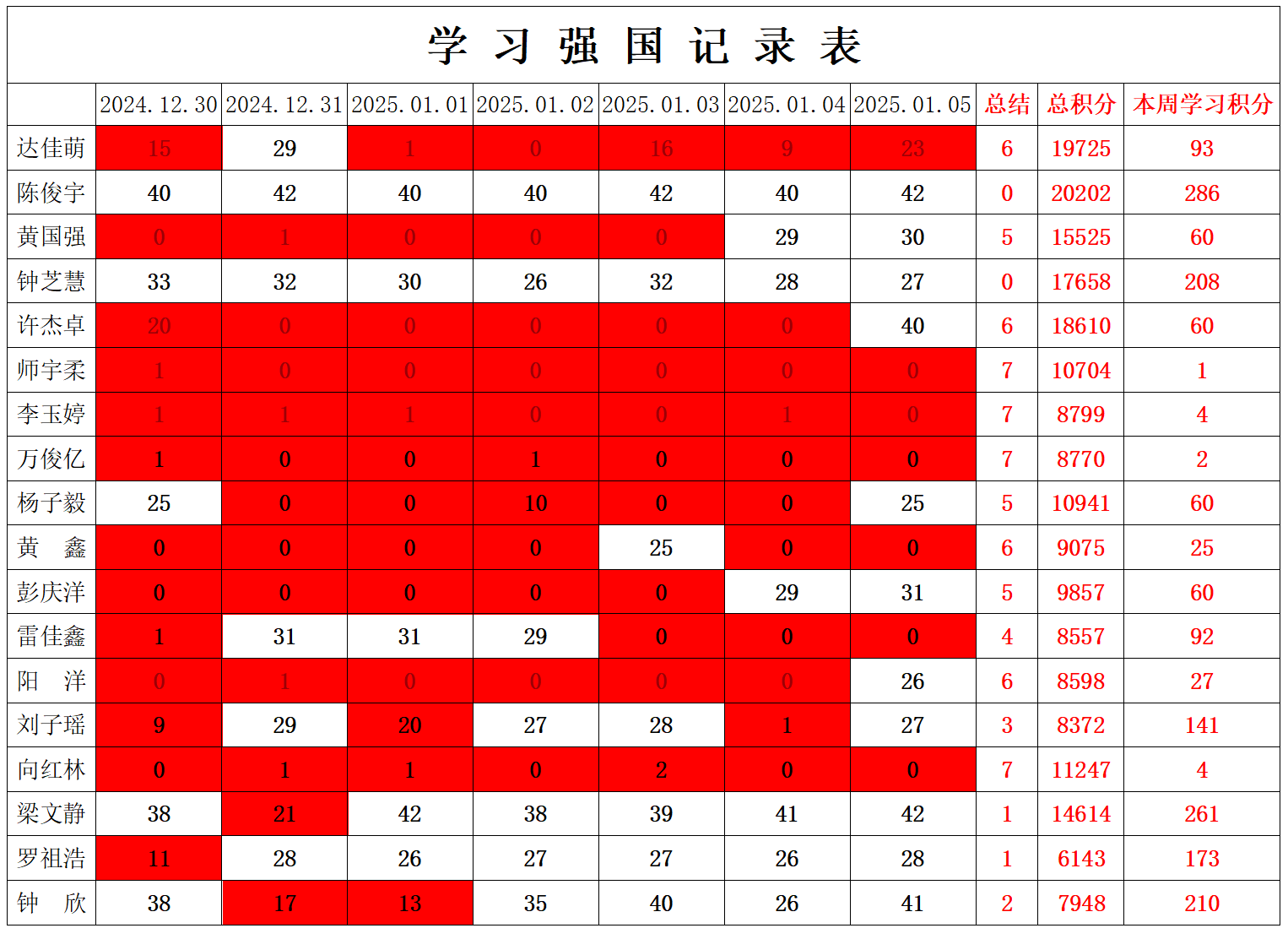 betway必威西汉姆联学生党支部2024-2025学年第一学期第十九周学习强国学习进度