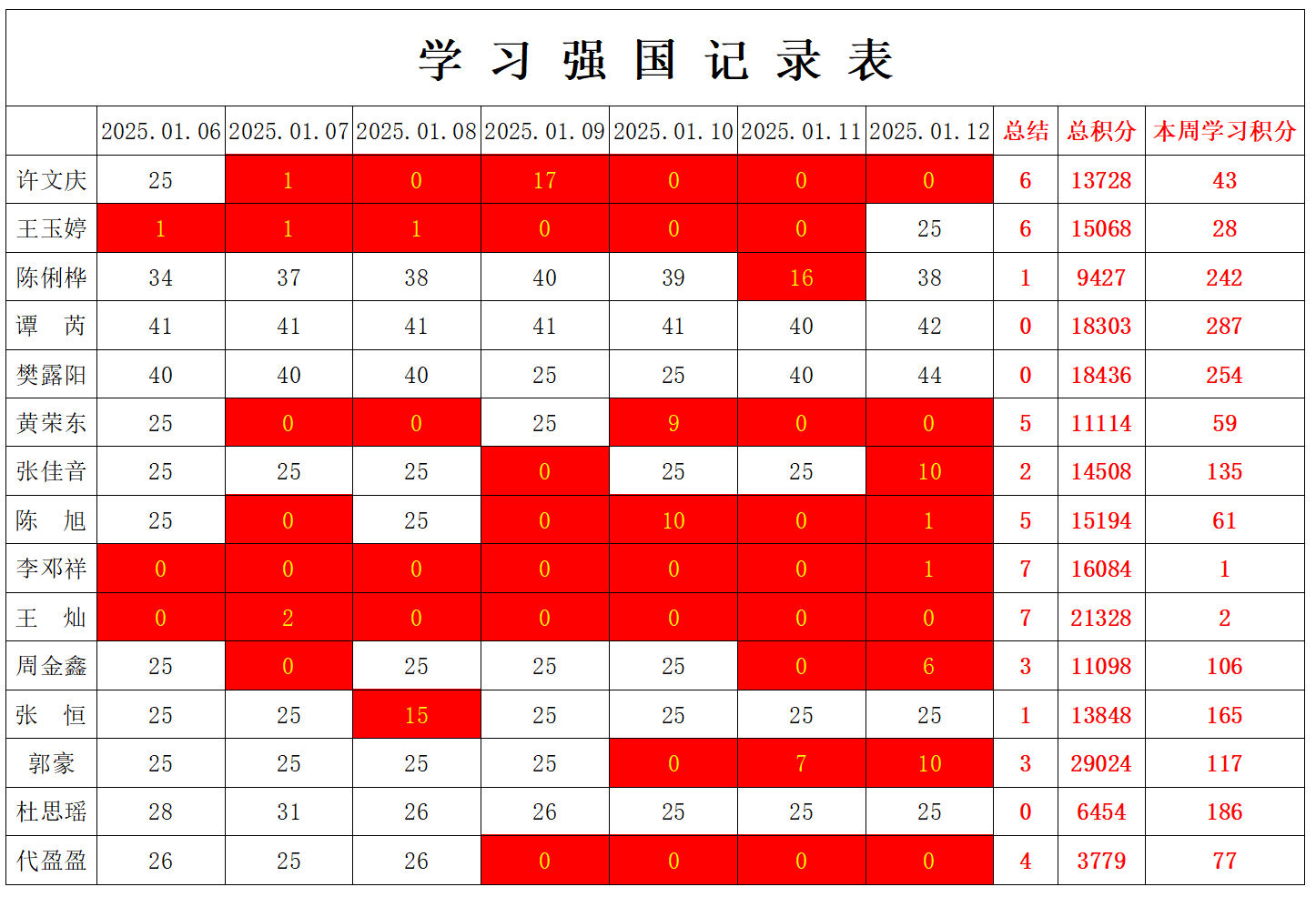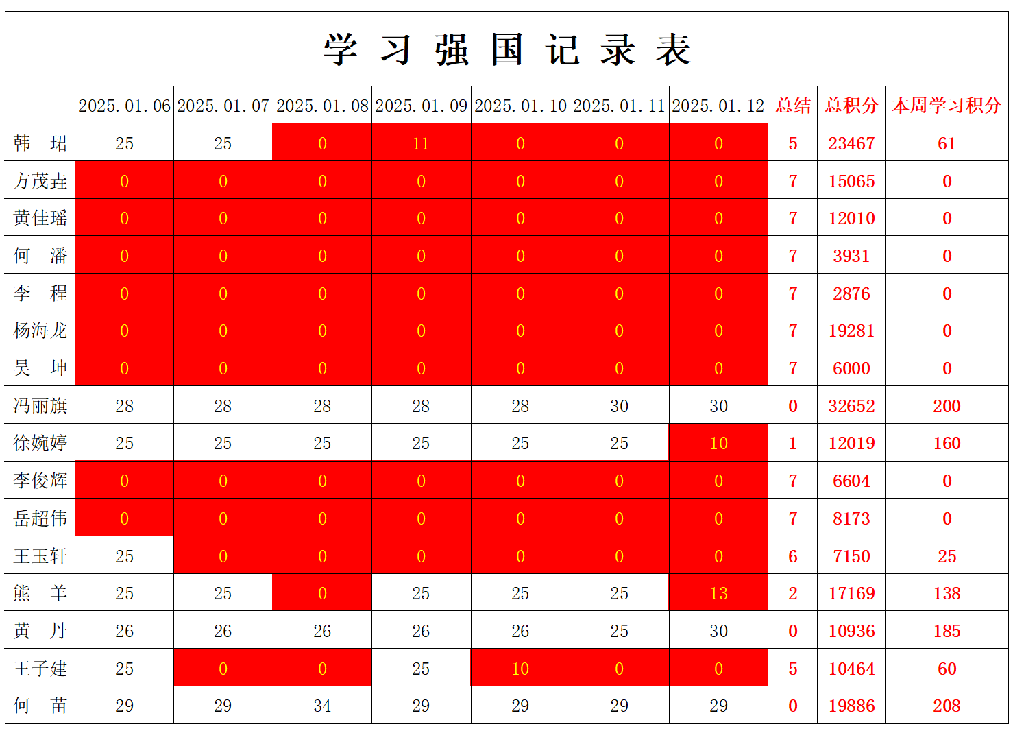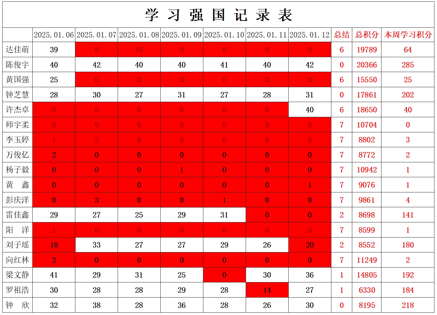 betway必威西汉姆联学生党支部2024-2025学年第一学期第二十周学习强国学习进度