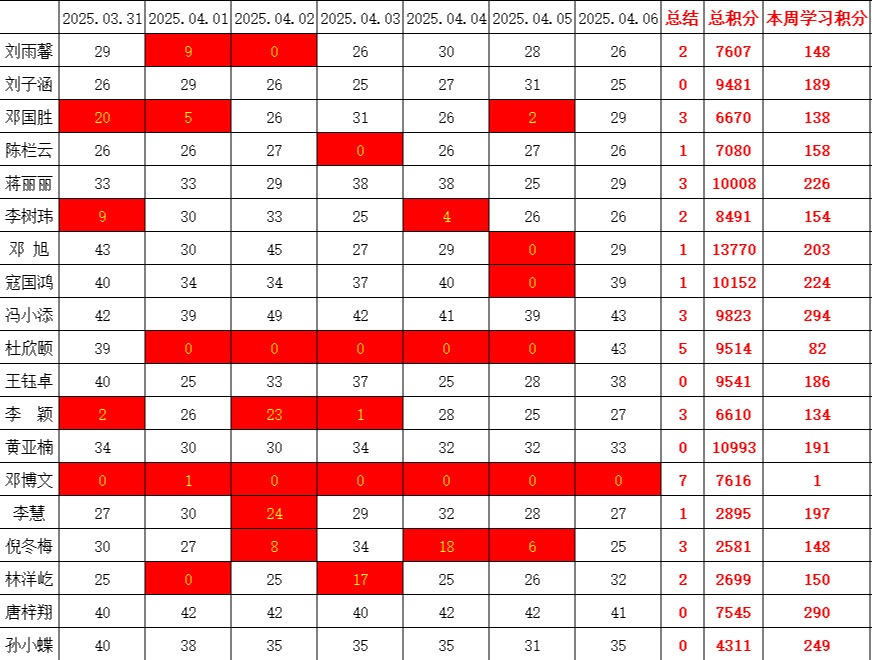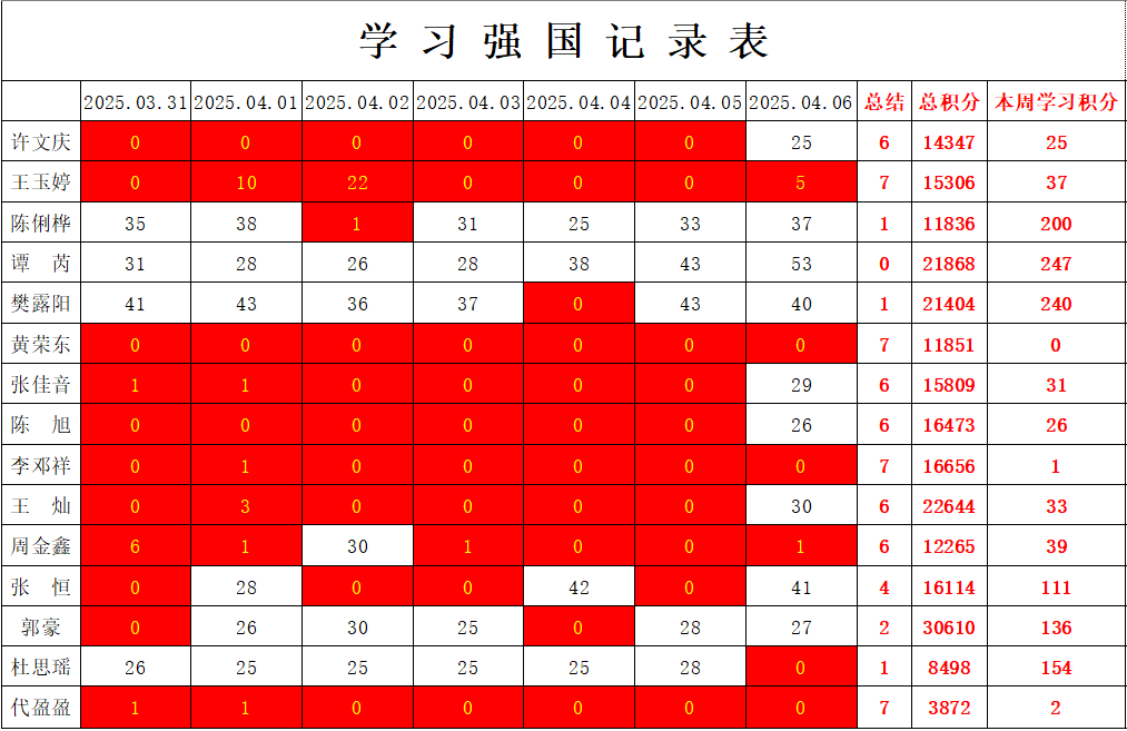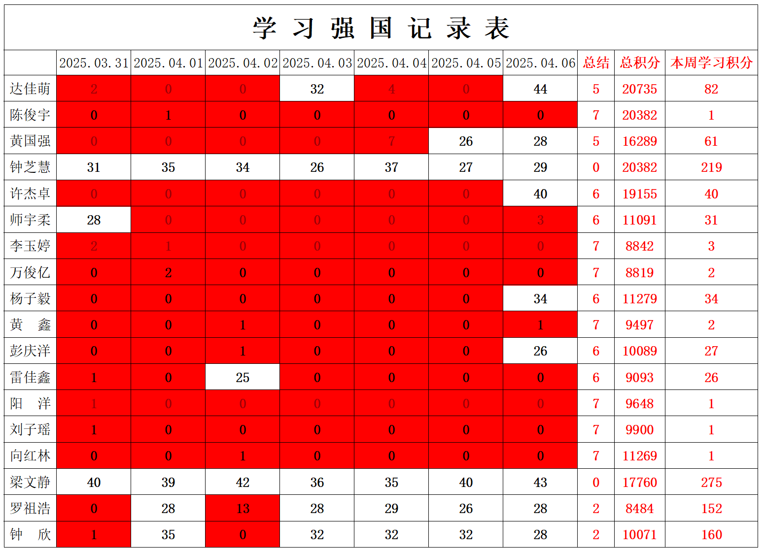 betway必威西汉姆联学生党支部2024-2025学年第二学期第六周学习强国学习进度