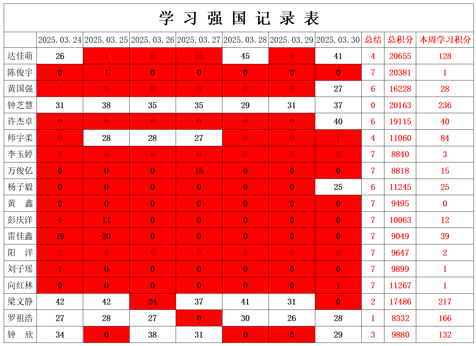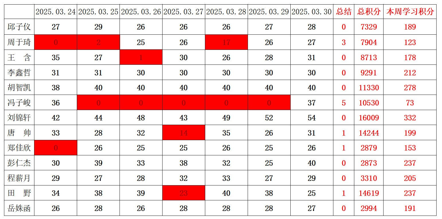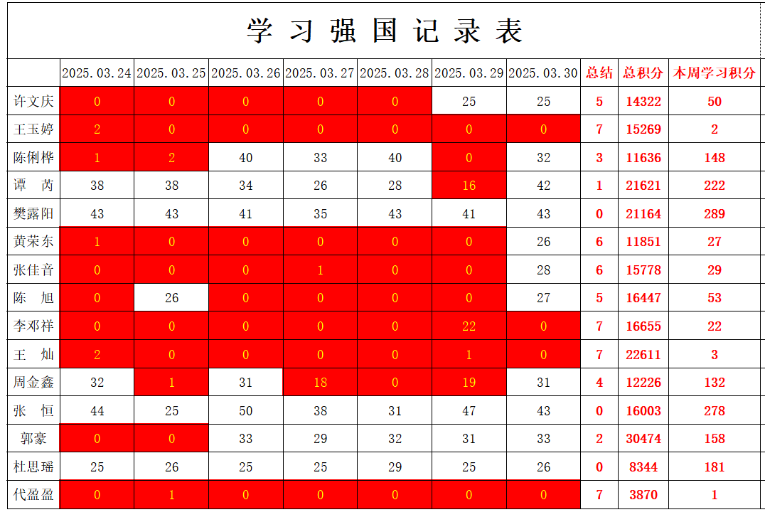 betway必威西汉姆联学生党支部2024-2025学年第二学期第五周学习强国学习进度
