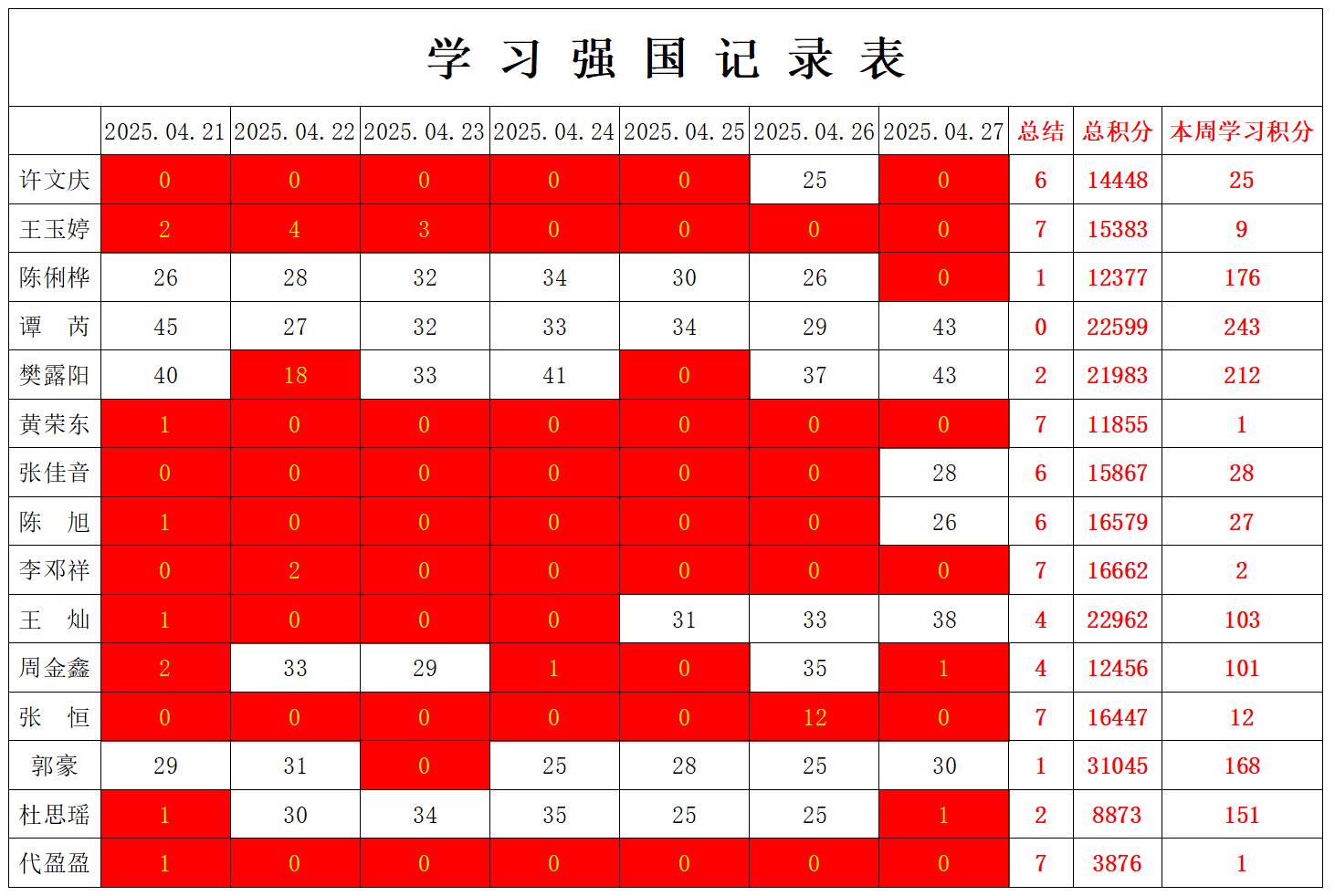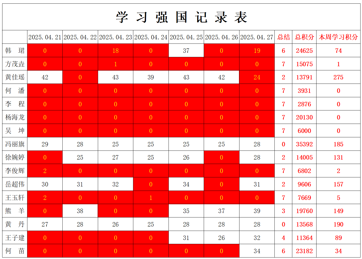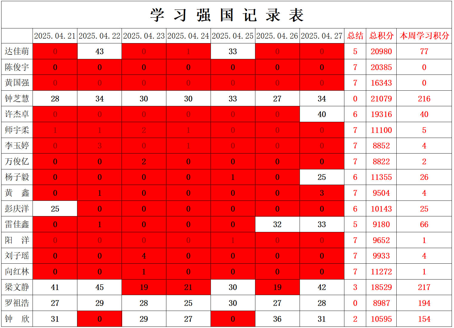 betway必威西汉姆联学生党支部2024-2025学年第二学期第九周学习强国学习进度
